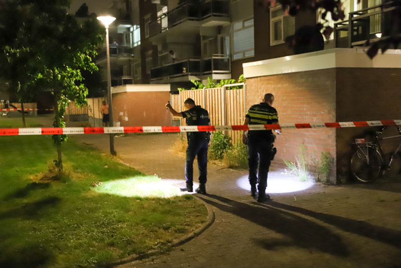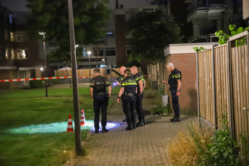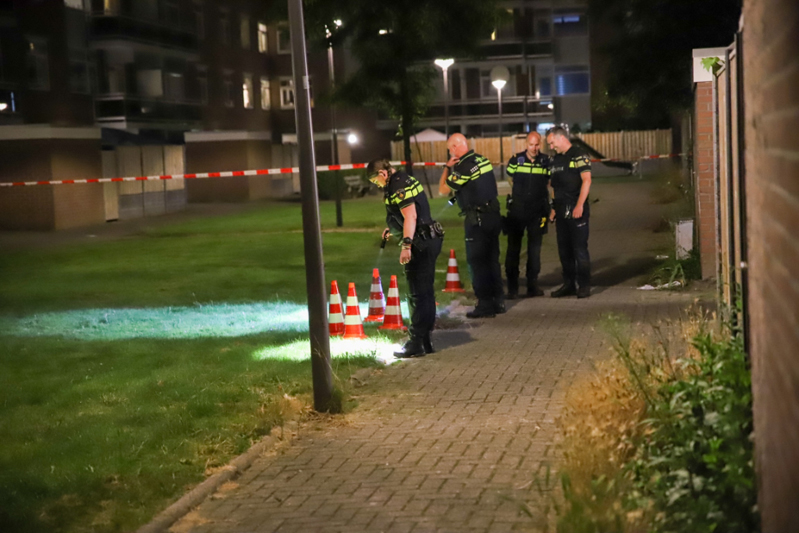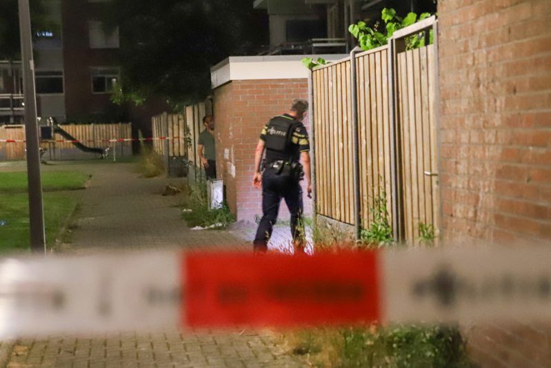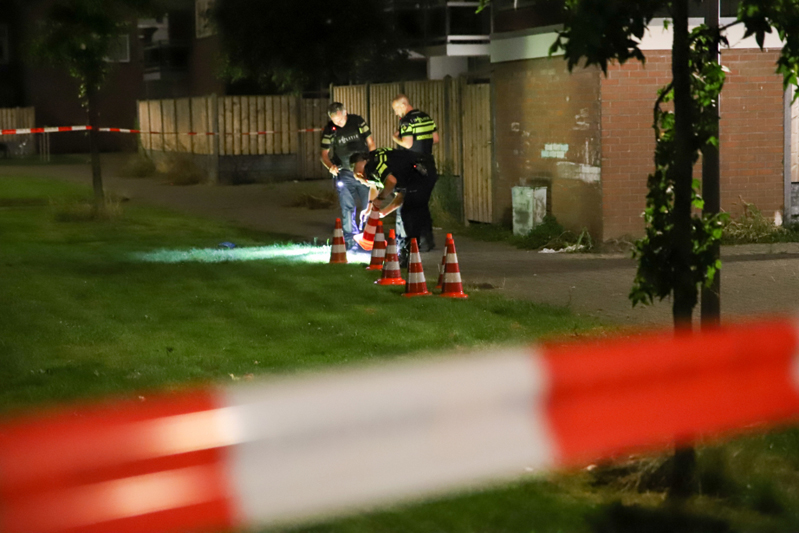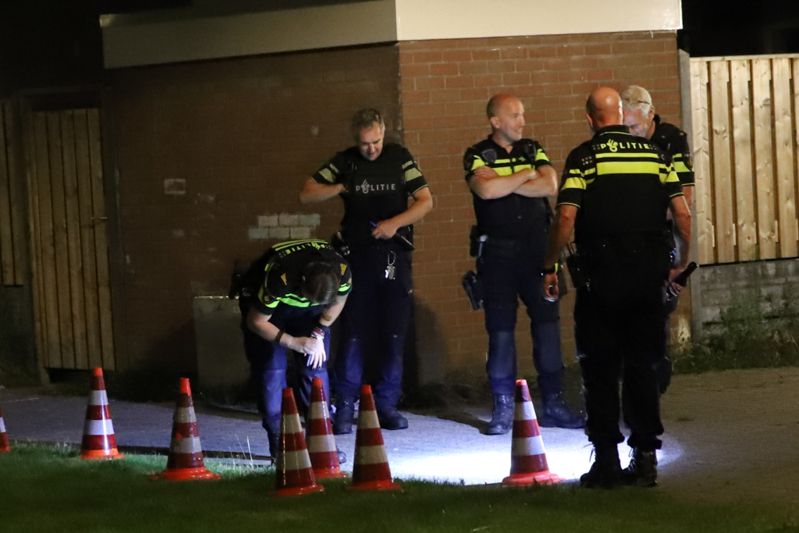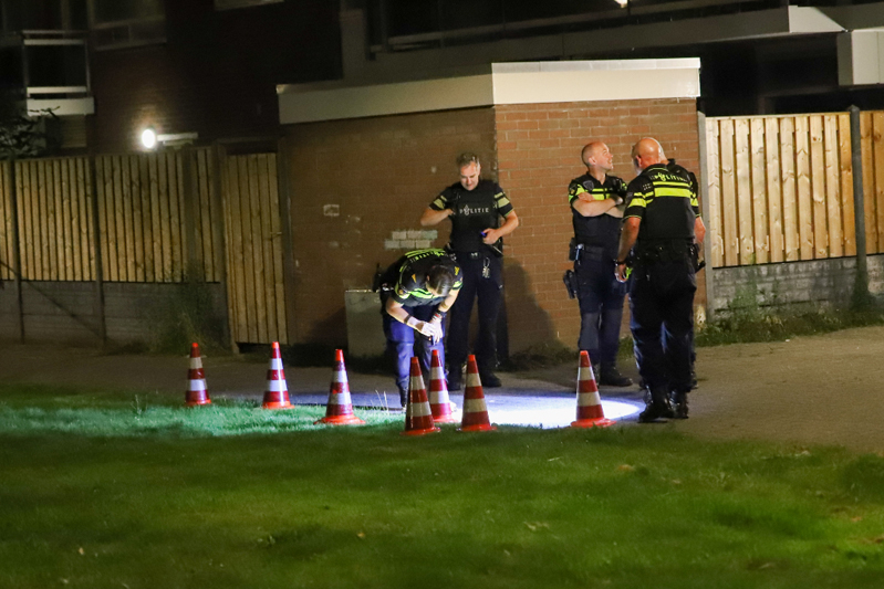 De politie heeft de omgeving afgezet en is een onderzoek gestart. In het grasveld achter de woning heeft de politie de kogelhulzen veilig gesteld.