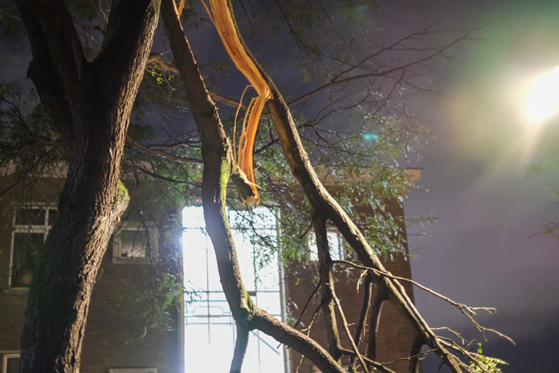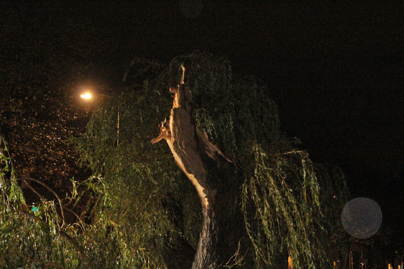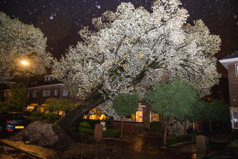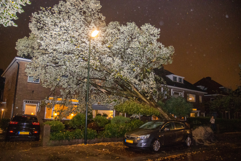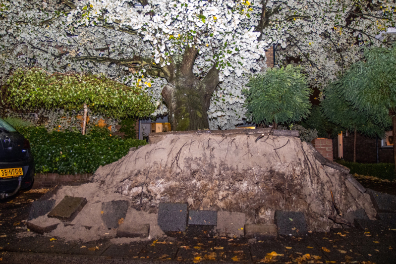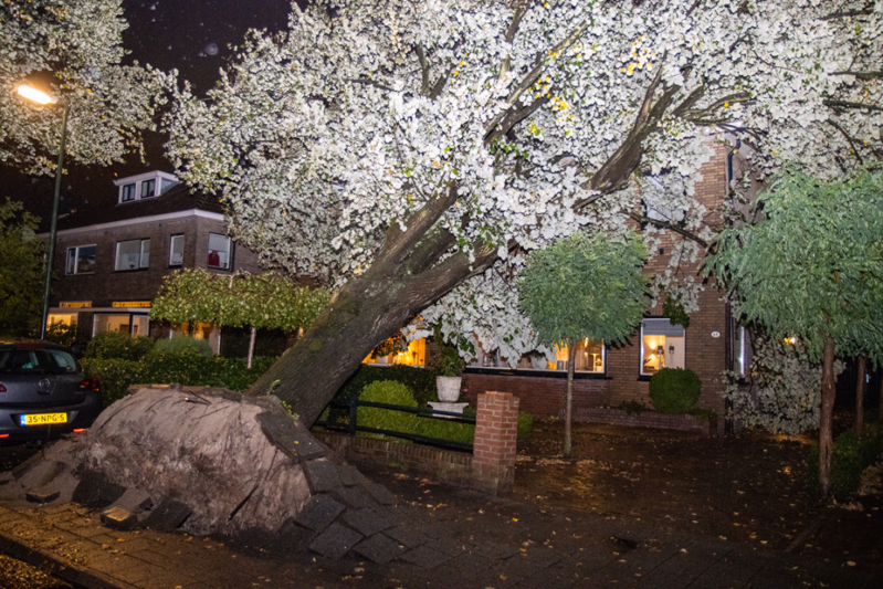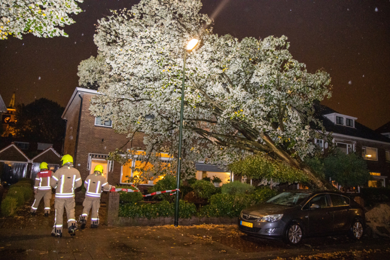 Vanwege de grote van de boom werd besloten de bomenploeg van de gemeente ter plaatse te laten komen om de boom te verwijderen. Of de huizen schade hebben is nog niet te zien.
