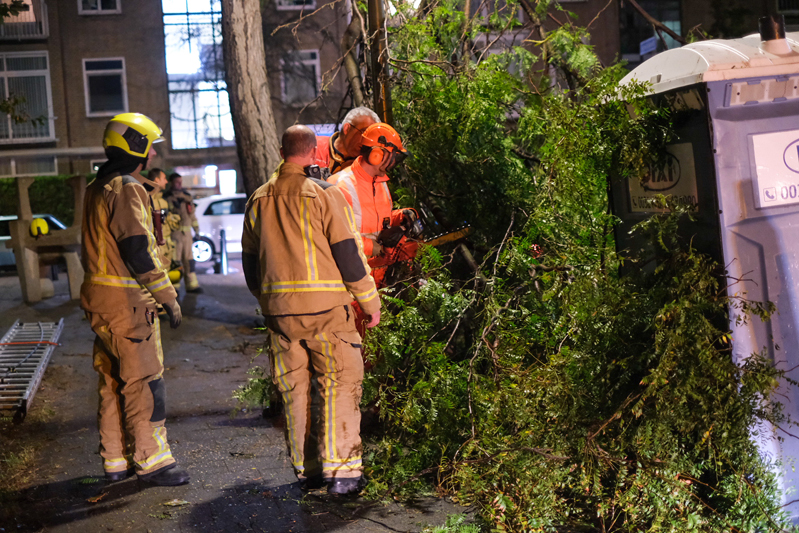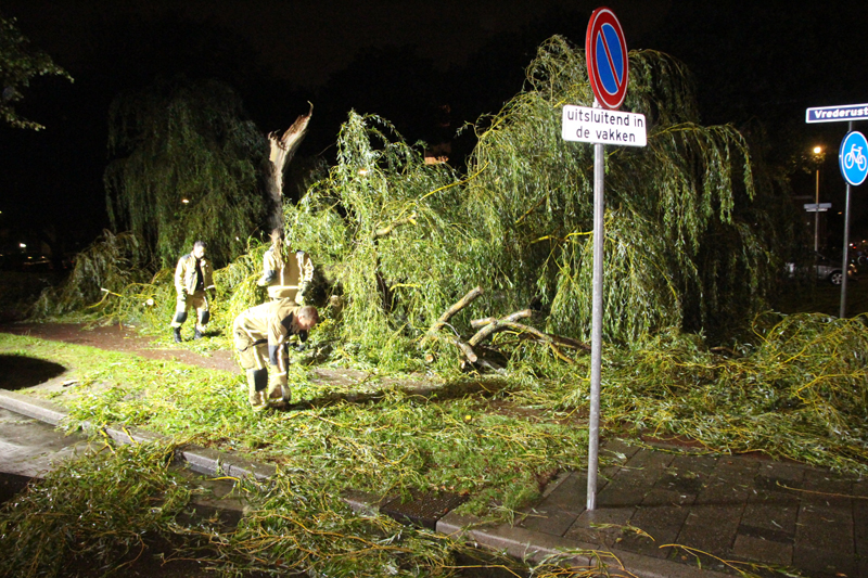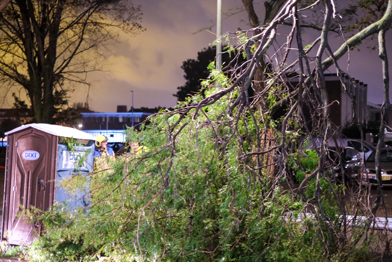 Den Haag – Op de kruising van de Erasmusweg met de Vrederustlaan in Den Haag viel een flinke boom om. De brandweer moest in actie komen om de weg weer vrij te maken. Bus 21 liep enige vertraging op.