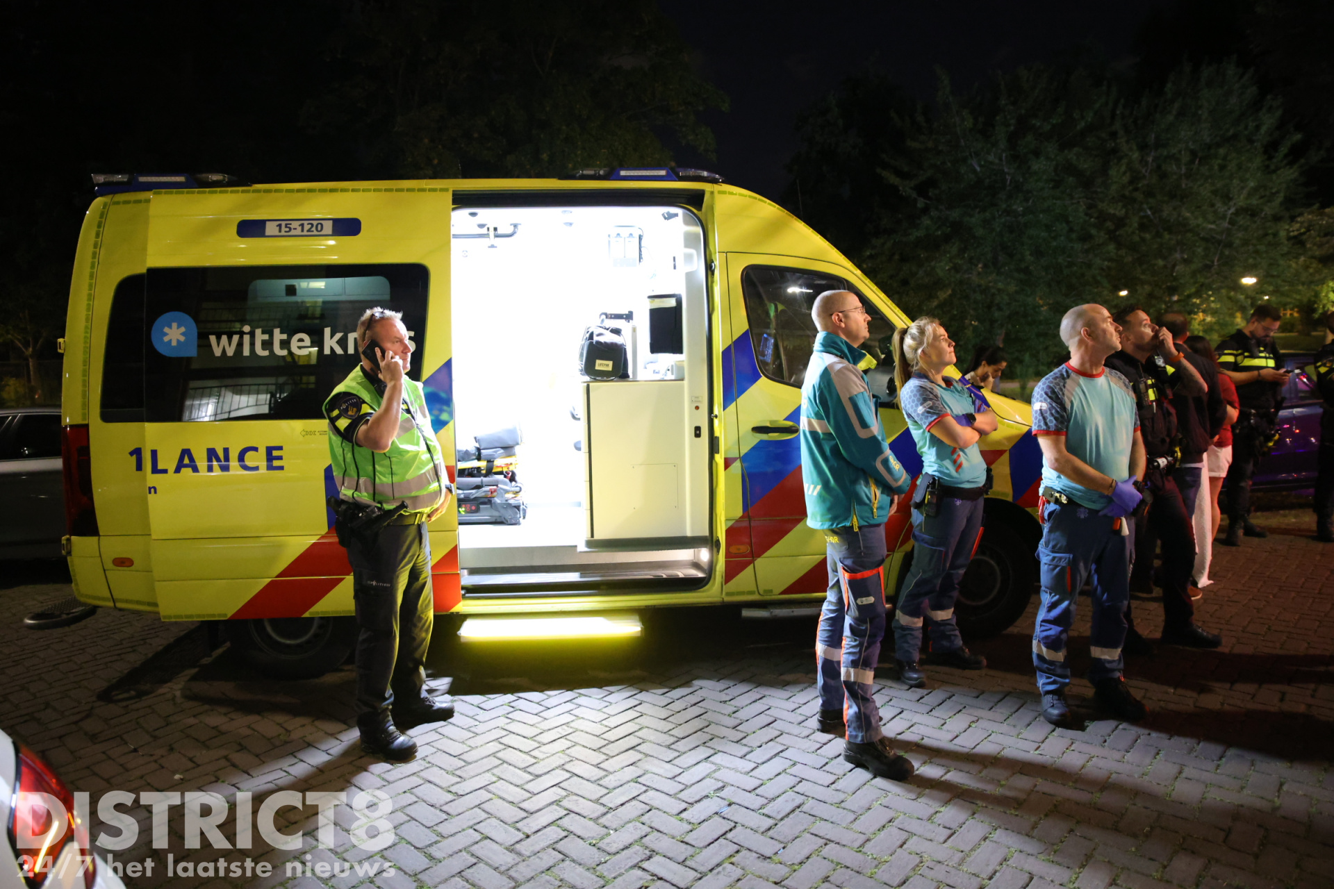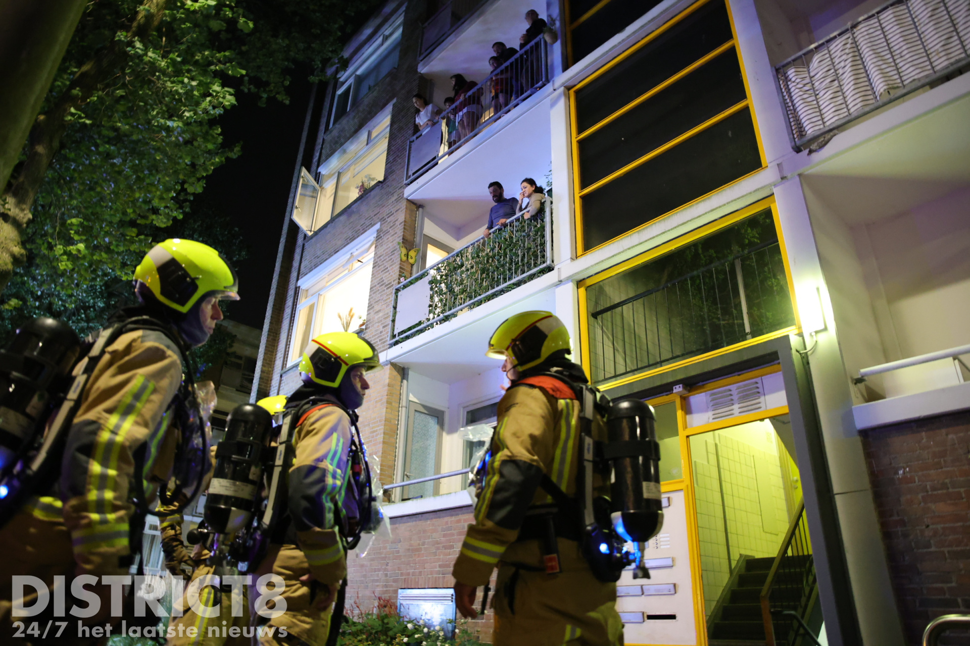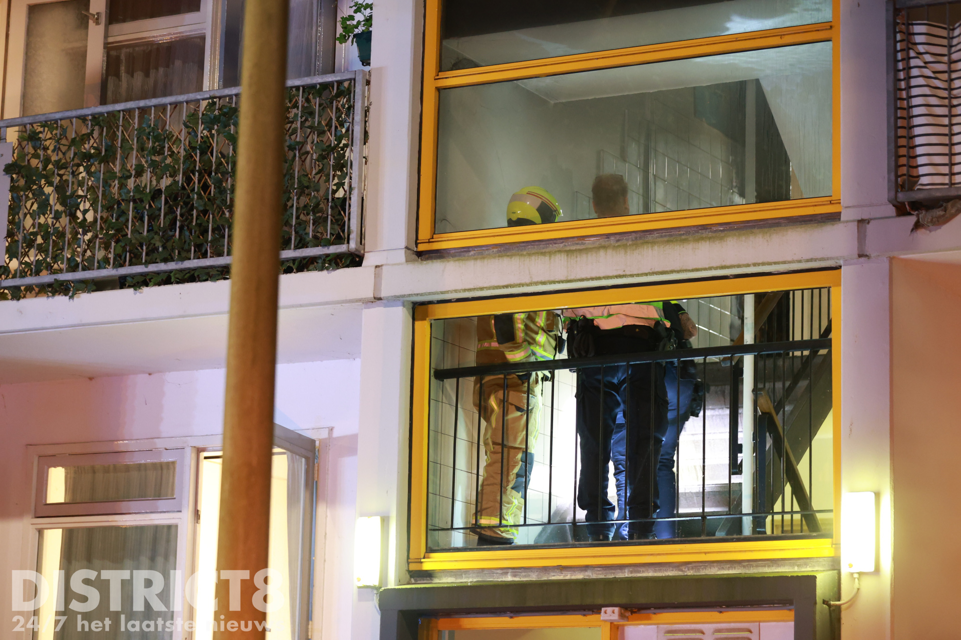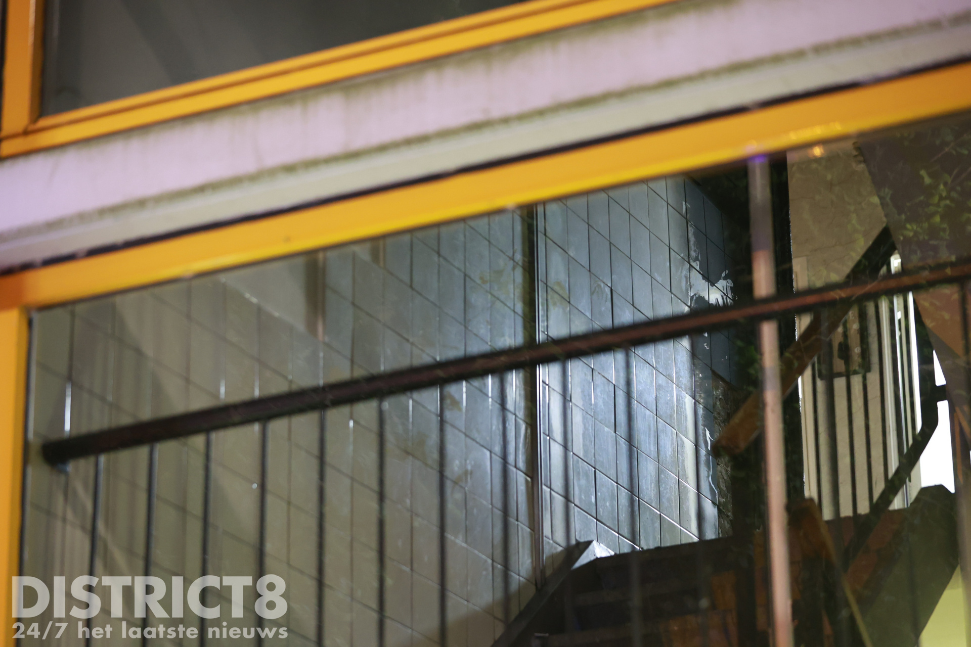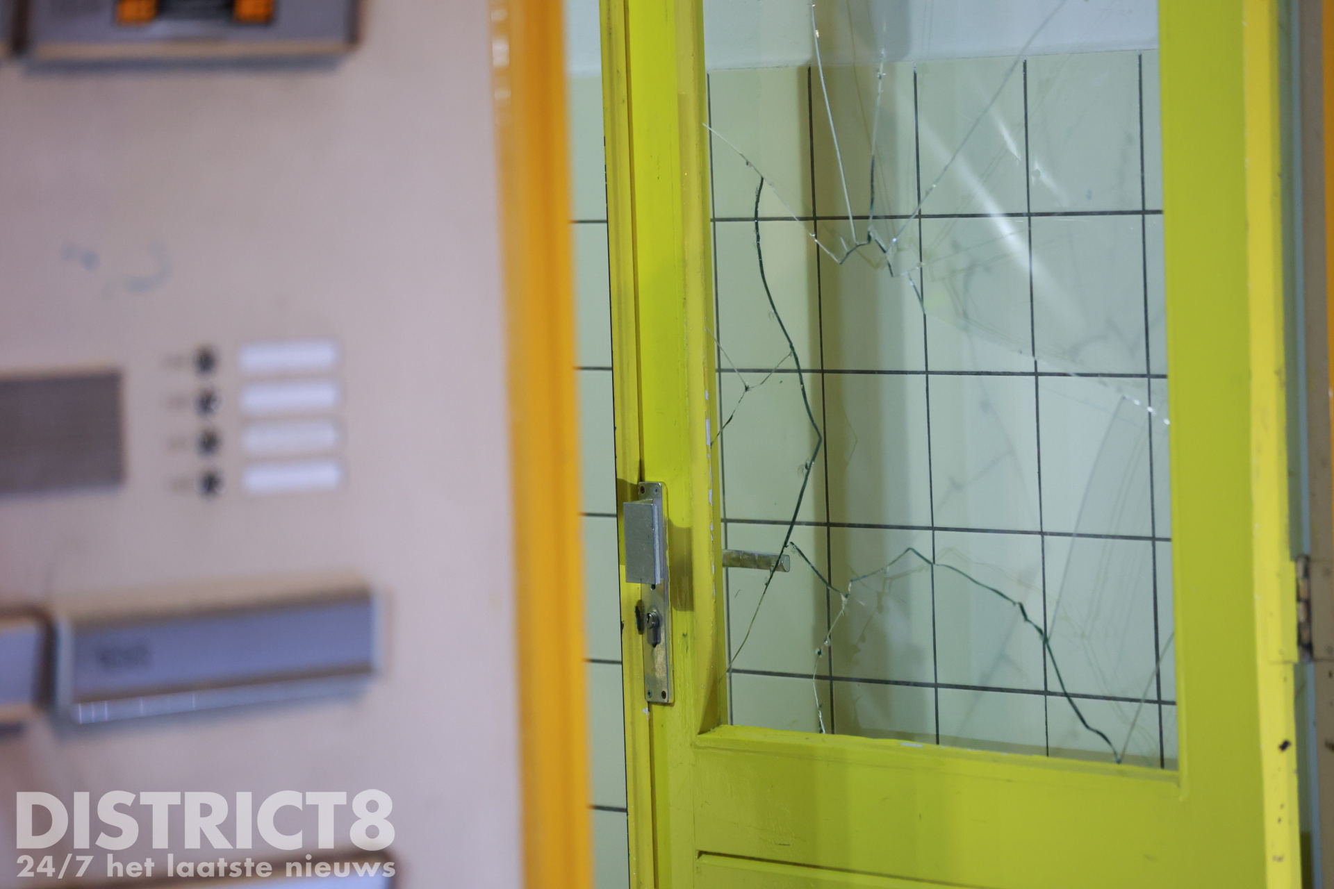 Een ambulance stond stand-by voor eventuele gewonden. Enkele personen zijn nagekeken, maar voor zover bekend niet vervoerd. De politie doet onderzoek naar brandstichting. De ruit in de toegangsdeur van het portiek is inderdaad vernield, wat het glasgerinkel bevestigt.