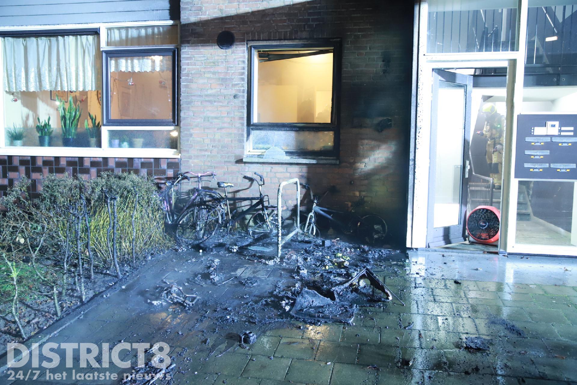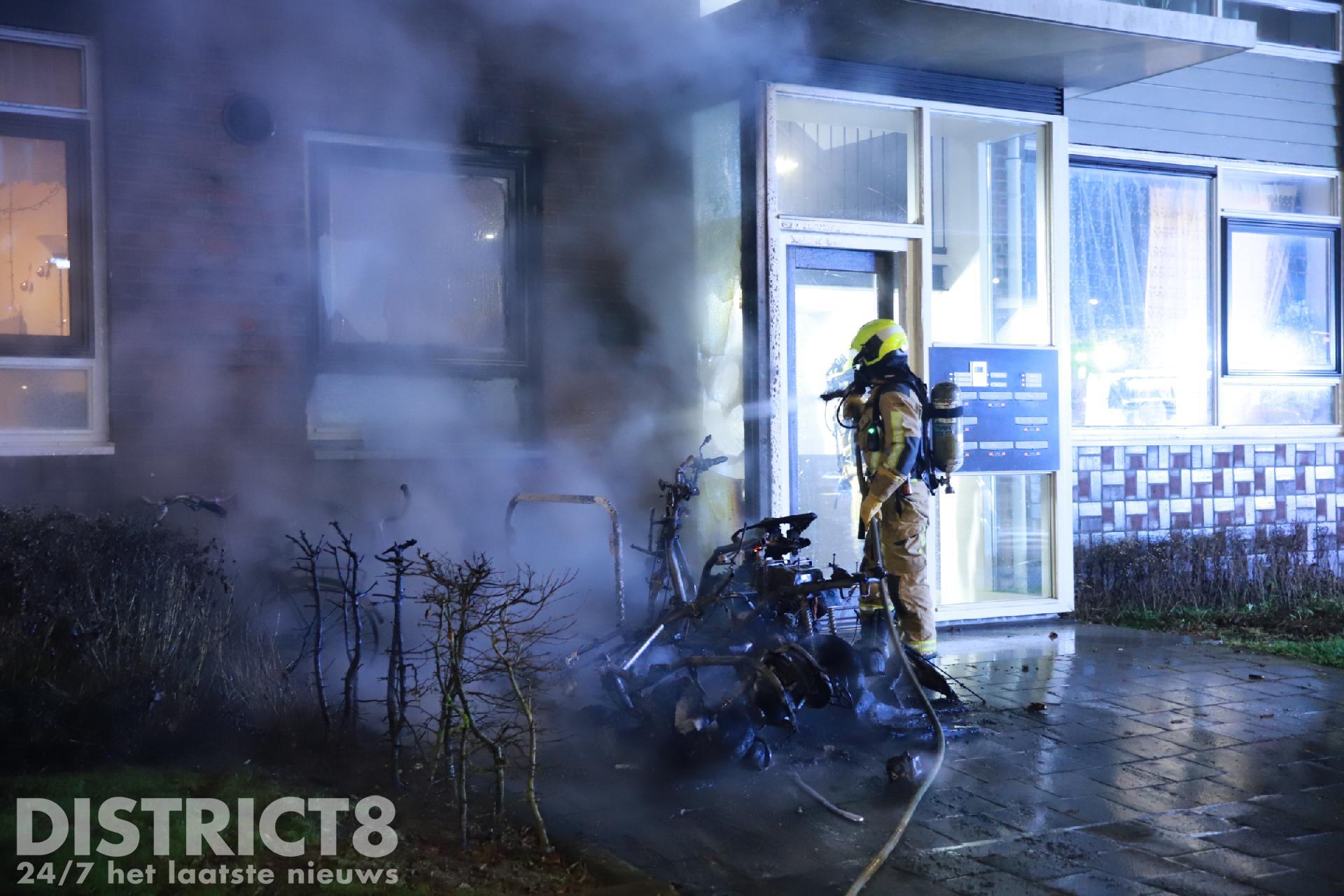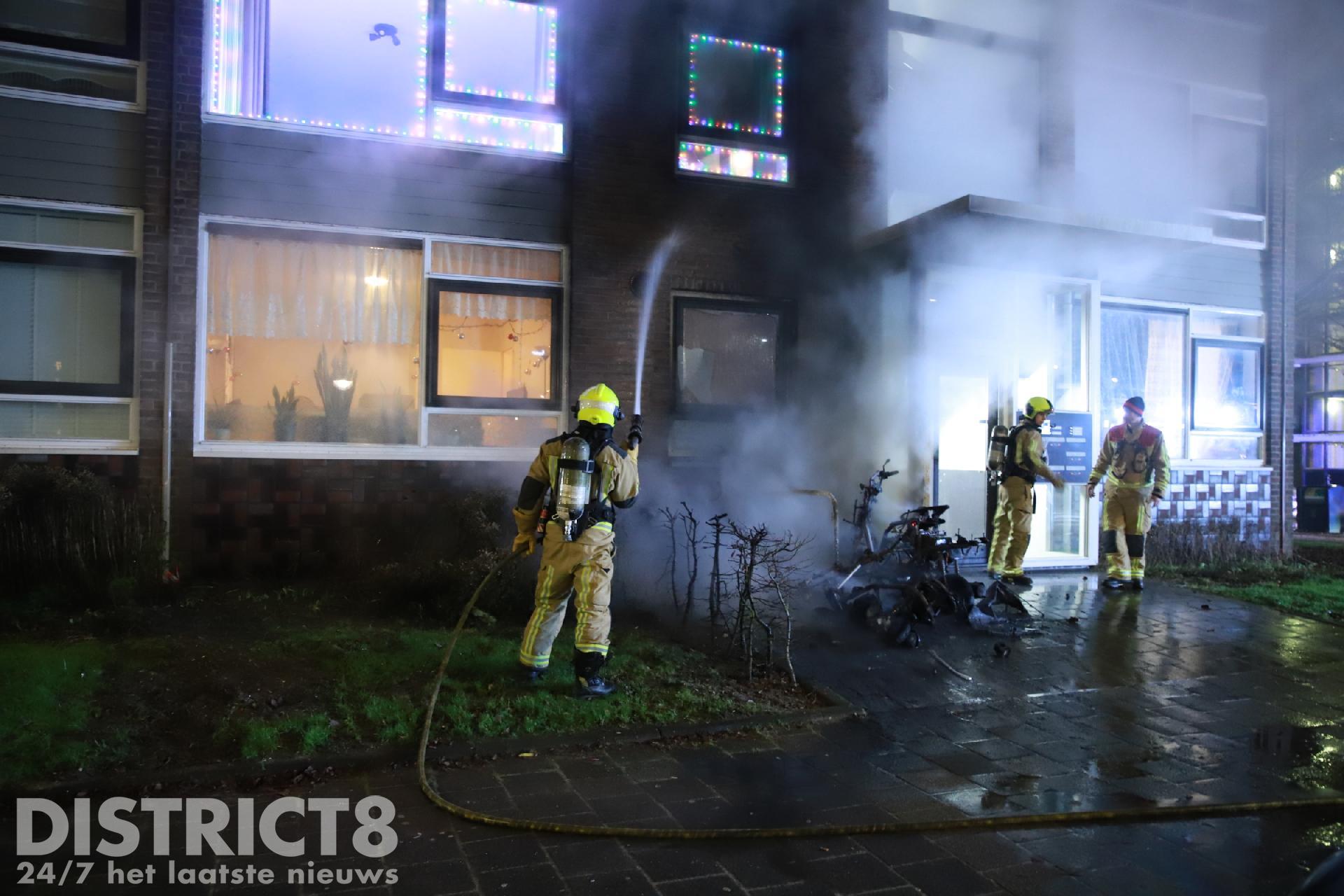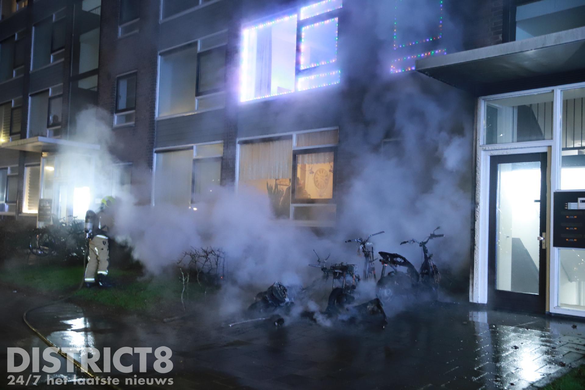 Omstreeks 01:10 uur ontving de brandweer de melding van een scooterbrand. Toen zij ter plaatse kwamen bleken er drie scooters volledig in brand te staan, tegen een portiekwoning aan. De brandweer begon meteen met blussen, zij konden voorkomen dat de brand naar binnen sloeg.