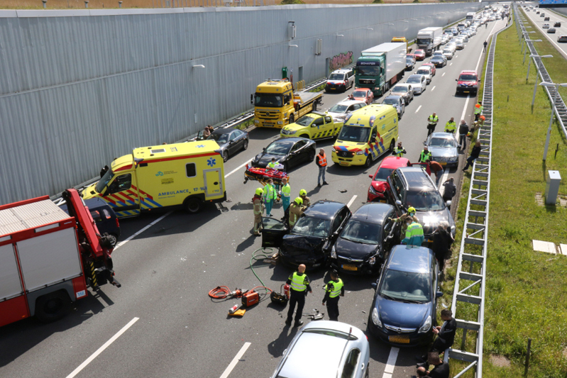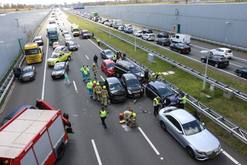 Schiedam – Op de A4 vanuit Schiedam heeft een flinke aanrijding plaatsgevonden tussen minimaal zes voertuigen.