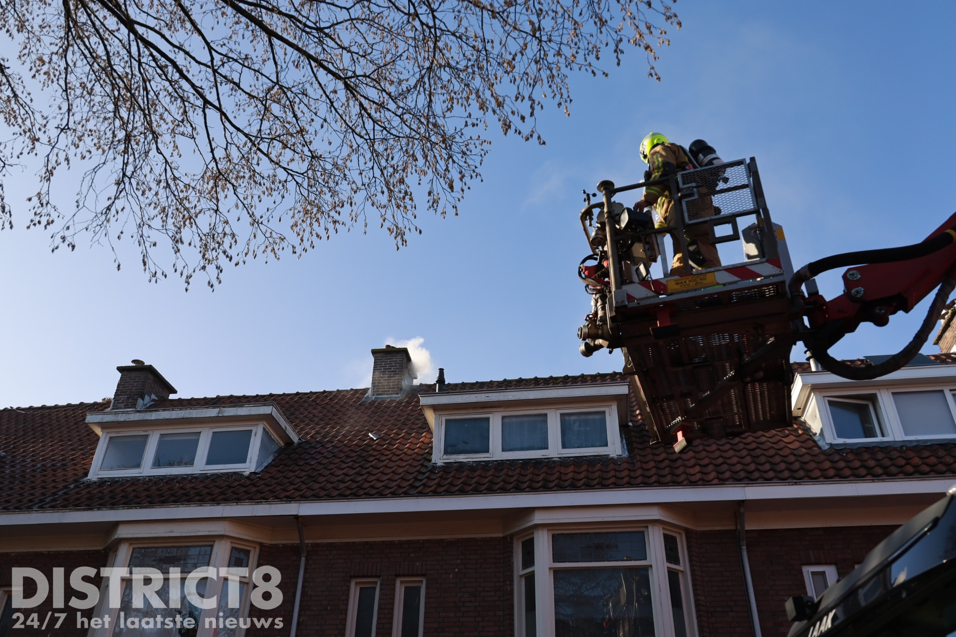 Den Haag – Vrijdagochtend 21 november brak er brand uit in een woning op de bovenste etage aan de Annie Foorestraat in Den Haag. Door de brand was kwam veel rook vrij welke zichtbaar was vanuit het dak van het gebouw.