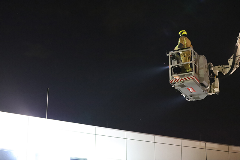 De brandweer heeft bij aankomst direct de hoogwerker opgesteld, een brandweerman heeft het dak geïnspecteerd en niks aangetroffen.