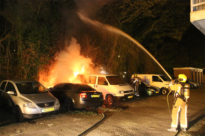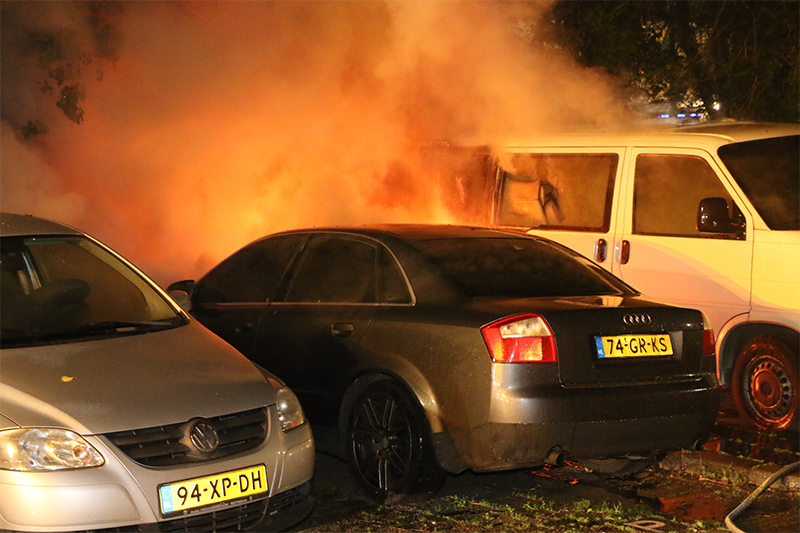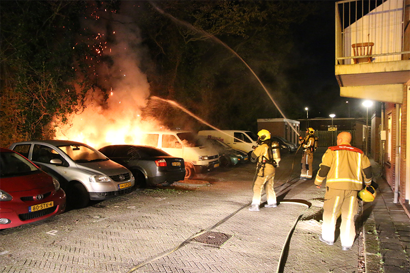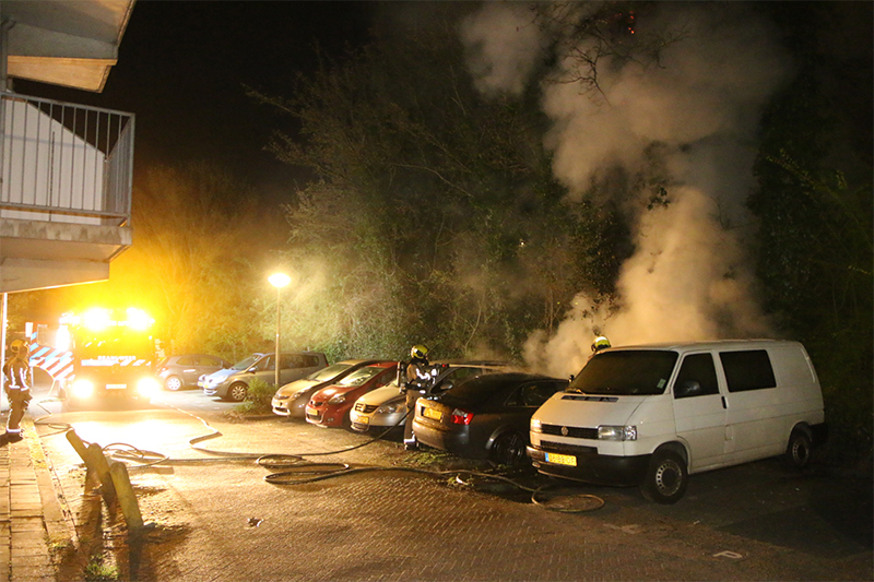De brandweer begon hierop direct met het blussen van de brand, deze was inmiddels ook overgeslagen op een naastgelegen busje.