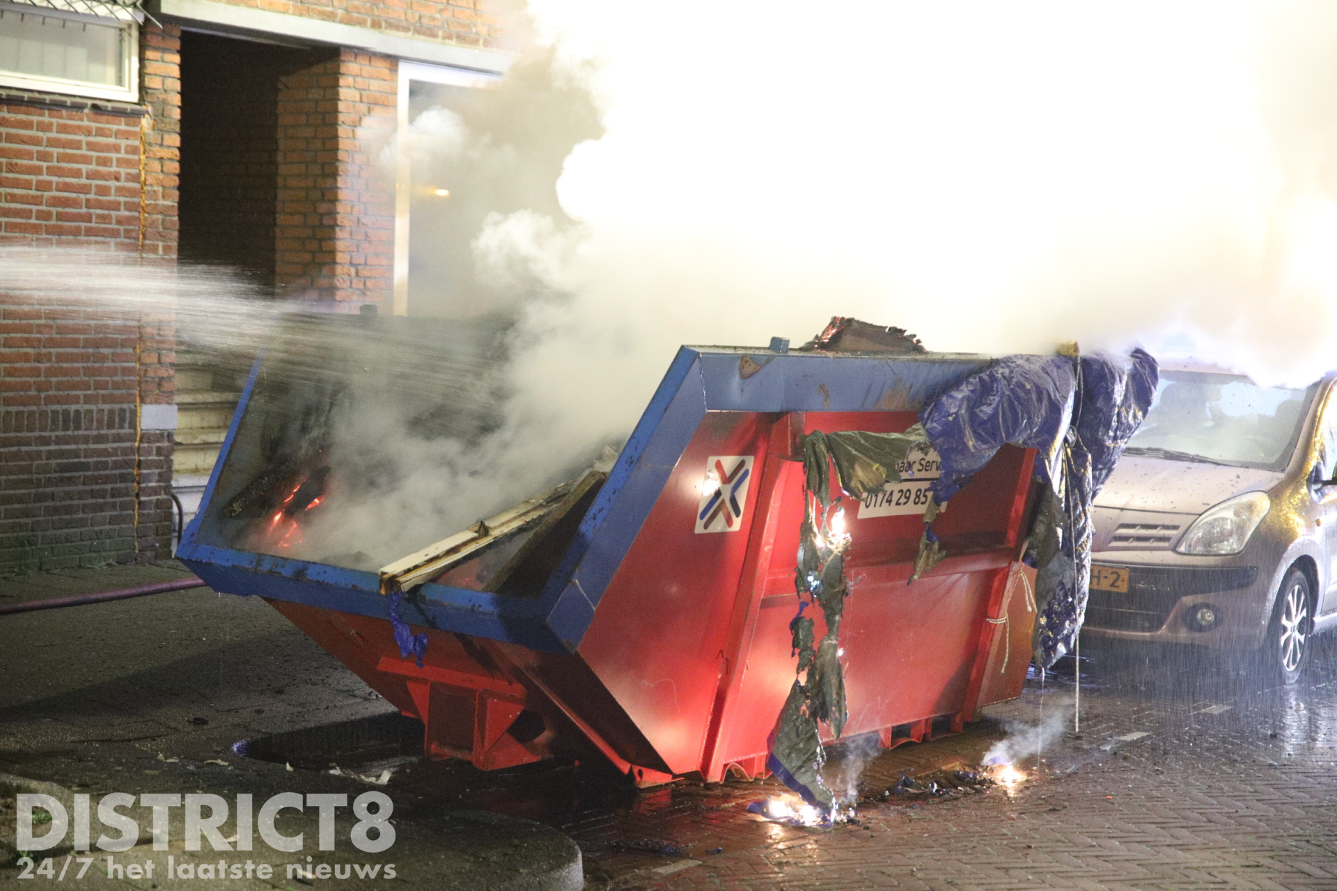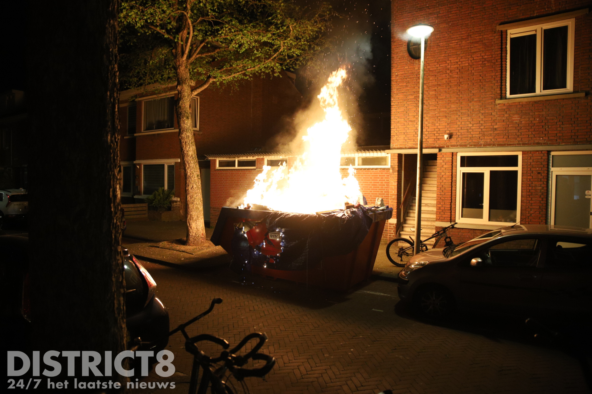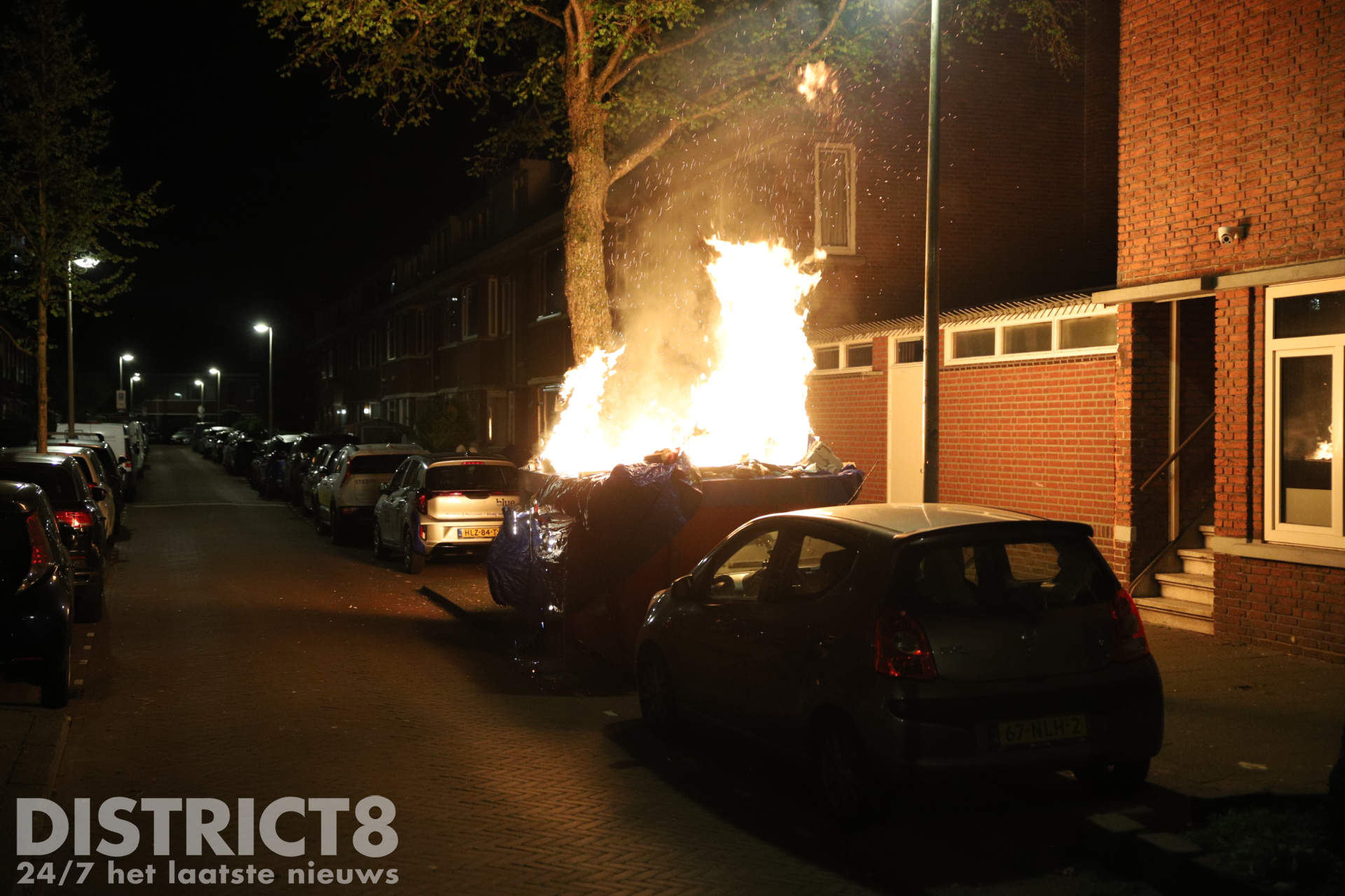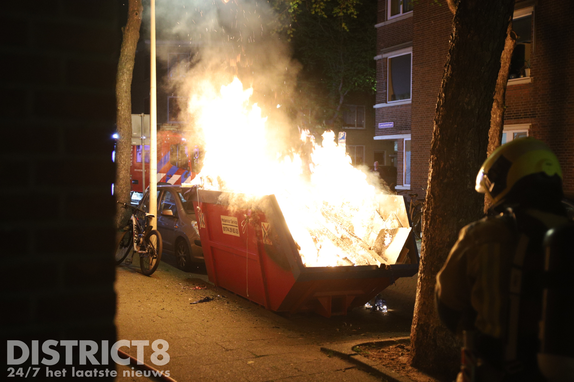 Den Haag – In de nacht van zondag op maandag 13 april is een afvalcontainer in brand gestoken op de Leersumstraat in Den Haag. De brand ging gepaard met flinke vlammen die enkele meters hoog kwamen. Door de hitte werden ook een boom en een lantaarnpaal in de directe omgeving aangestraald.