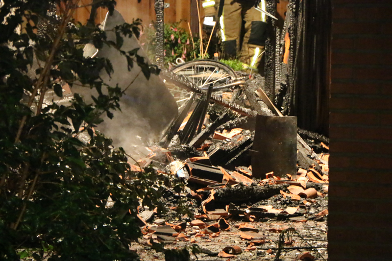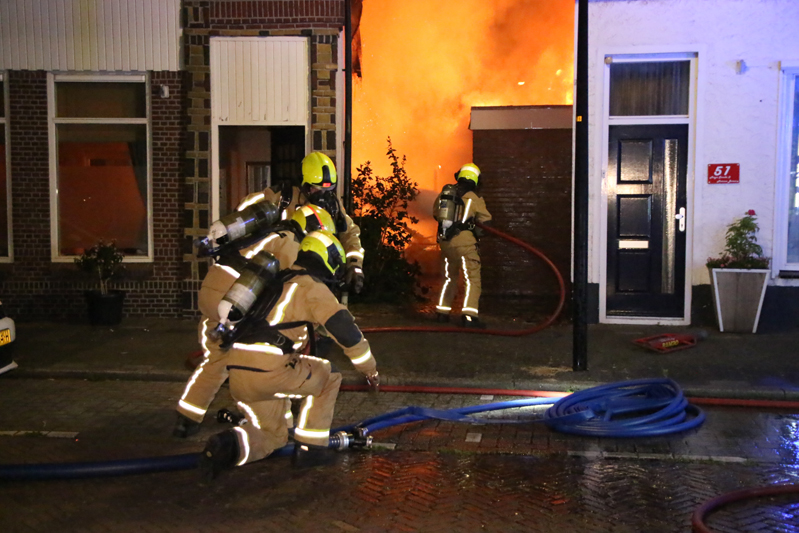 Monster – Aan de Rijnweg in Monster is in de nacht van zondag op maandag 22 juli brand ontstaan in een schuur achter een woning. De brand ging gepaard met metershoge vlammen en veel rookontwikkeling.