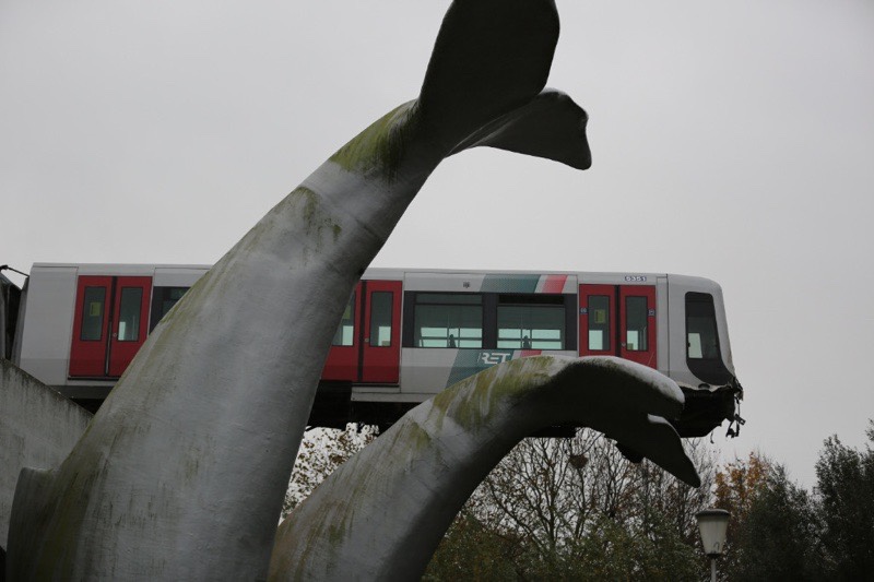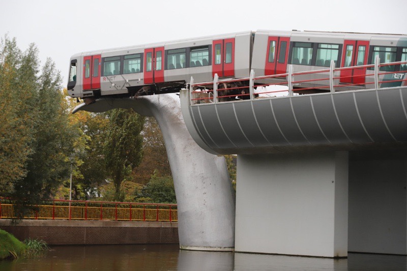 Spijkenisse – Bij metrostation de Akkers t.h.v. het Componistenpad heeft in de nacht van zondag op maandag een bizar ongeval plaatsgevonden met een metro.