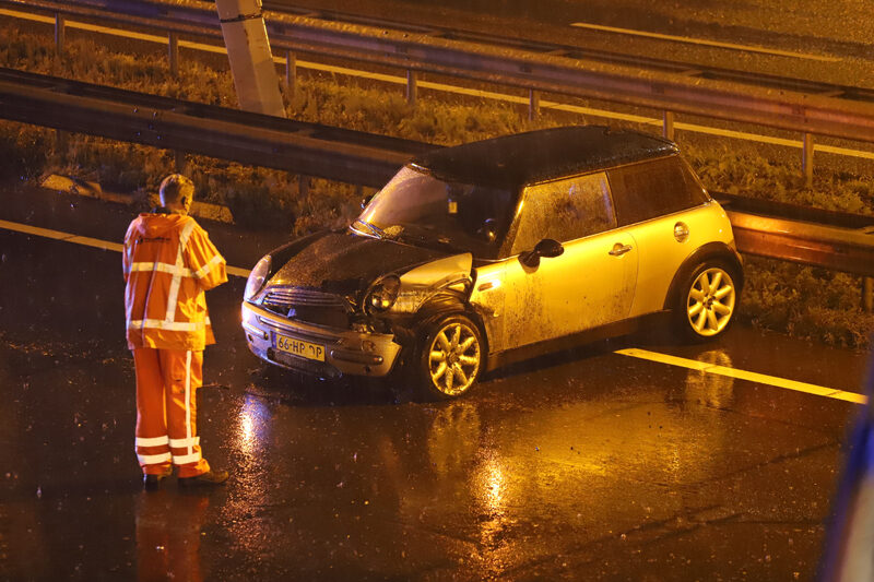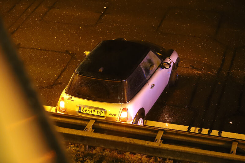 Delft – Een Mini Cooper is vannacht een paar centimeter kleiner geworden nadat de bestuurder van het voertuig tegen een vangrail aanreed.