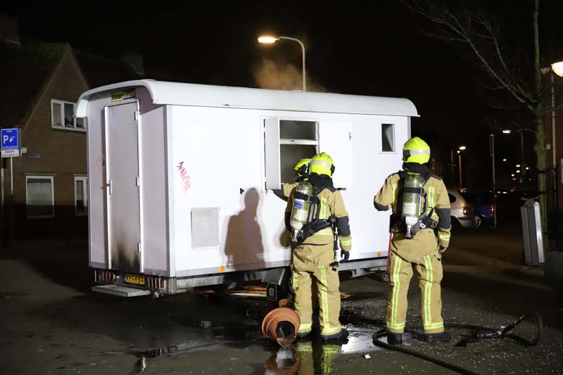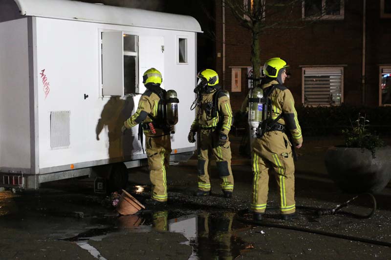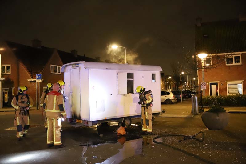 Den Haag – Op het Goeverneurplein in Den Haag is zondagavond 24 januari een mobiele bouwkeet in brand gestoken.