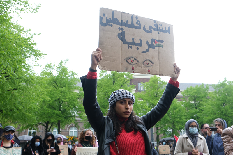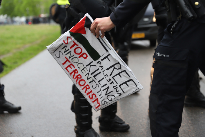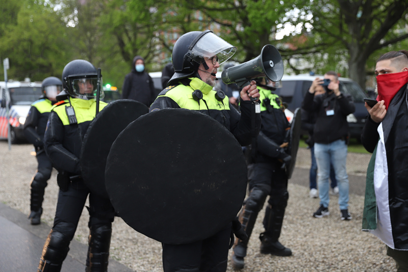 Den Haag – Bij de Pro-Palestina demonstratie op het Malieveld in Den Haag is zaterdagmiddag de Mobiele Eenheid ingezet. De sfeer werd aan het einde van demonstratie wat grimmiger.