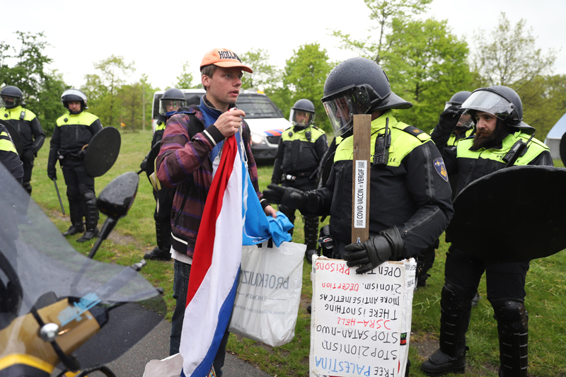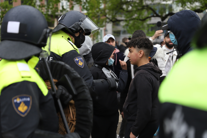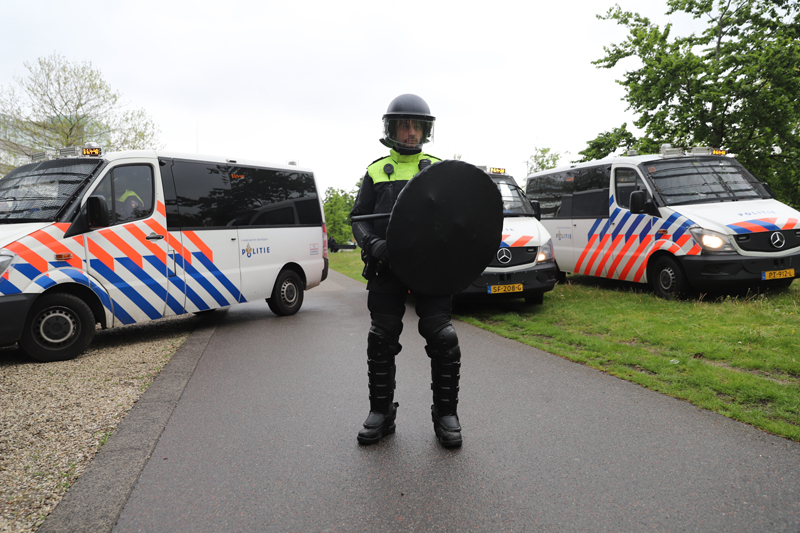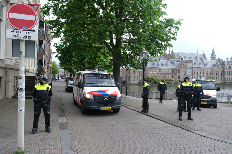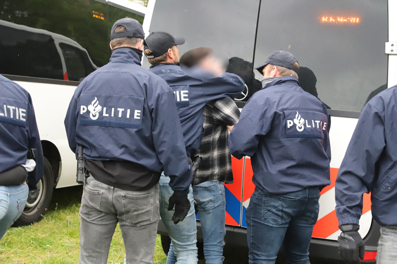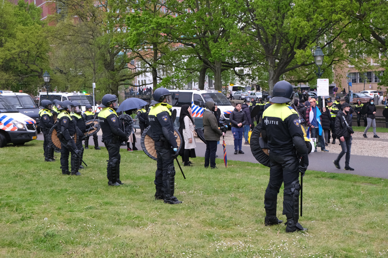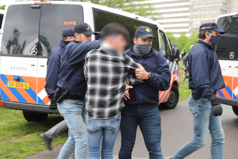De Mobiele Eenheid heeft de groep ingesloten op de Laan van Reagan en Gorbatsjov. Verschillende personen uit de groep worden aangehouden. Er werd meerdere malen opgeroepen dat de demonstranten moesten vertrekken. Werd hier geen gehoor aan gegeven, dan worden zij aangehouden. De politie heeft enkele personen aangehouden.
