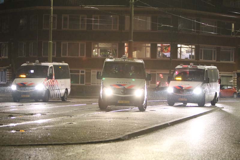 Meerdere bussen van de Mobiele Eenheid (ME) stonden op een afstand stand-by om de aanwezige politie eenheden te assisteren wanneer dit nodig was.