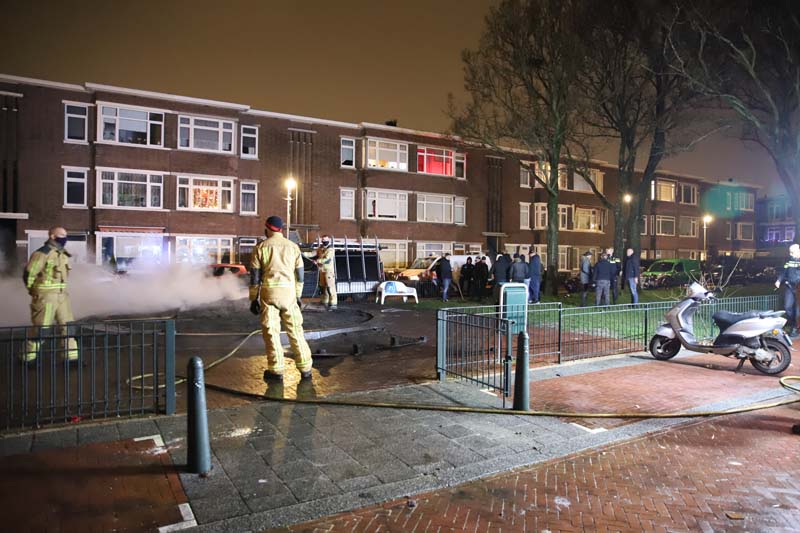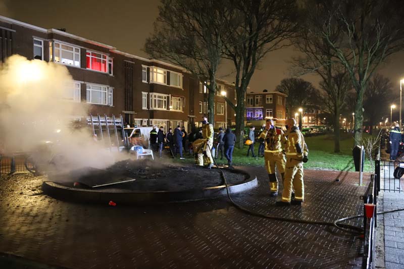 Den Haag – Aan de Damasstraat in Den Haag heeft een grote groep jeugd maandagavond 28 december een vuurtje gemaakt op een pleintje.