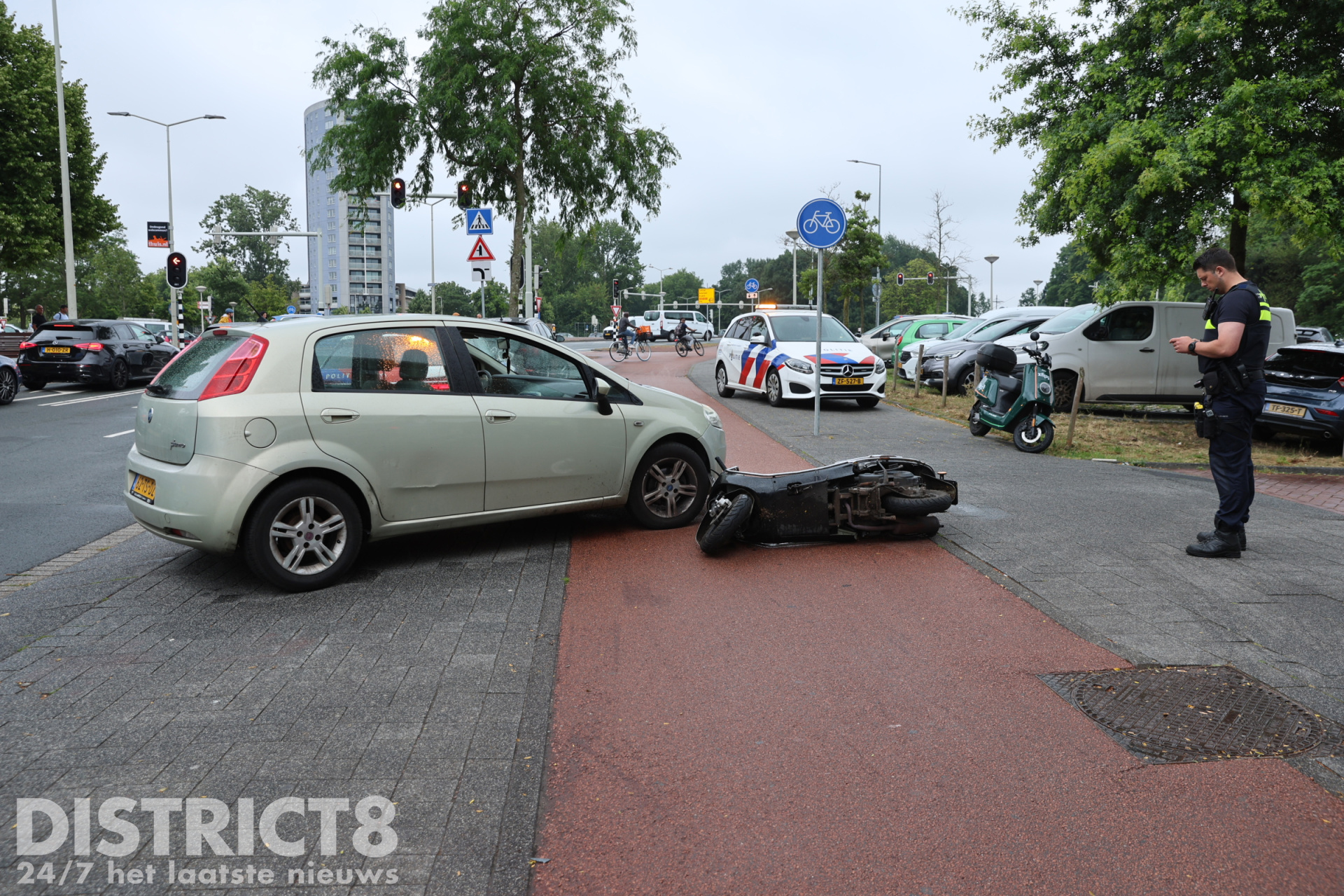 De twee opzittenden van de scooter zijn nagekeken door het ambulancepersoneel en hoefden daarna niet mee naar het ziekenhuis.