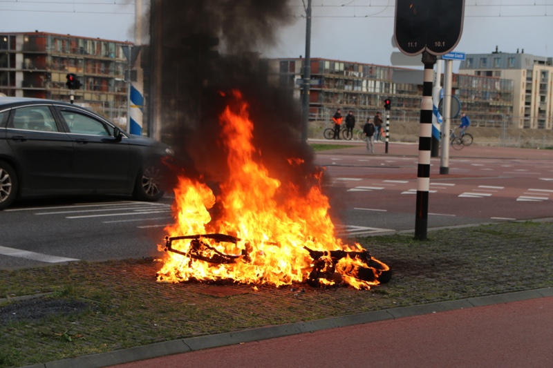 Delft – Op de Nieuwe Gracht in Delft is vrijdagavond 20 maart een motor in vlammen opgegaan.