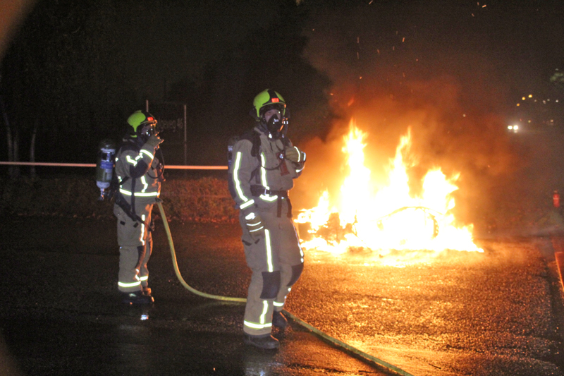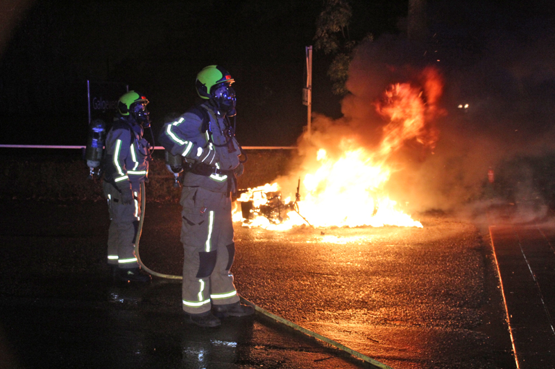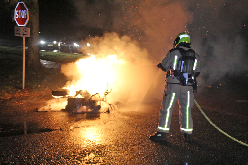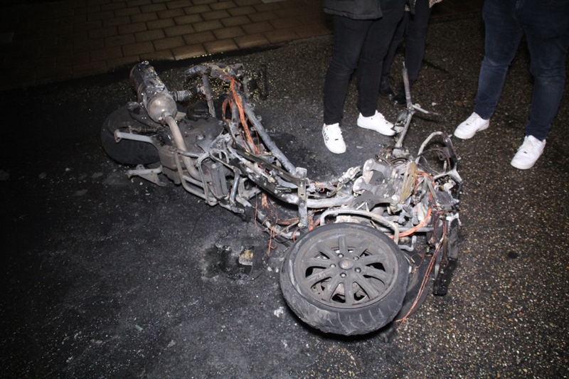 Niet veel later vloog de motor in de brand. Een agent probeerde nog met een brandblusser de brand te blussen maar dat lukte niet.