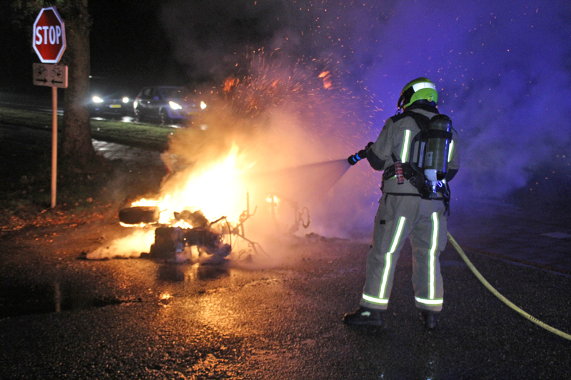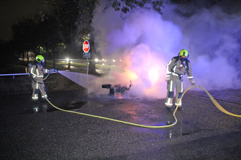 De brandweer van Maasdijk is met spoed ter plaatse gekomen en heeft de motor geblust. Deze is helemaal uitgebrand.