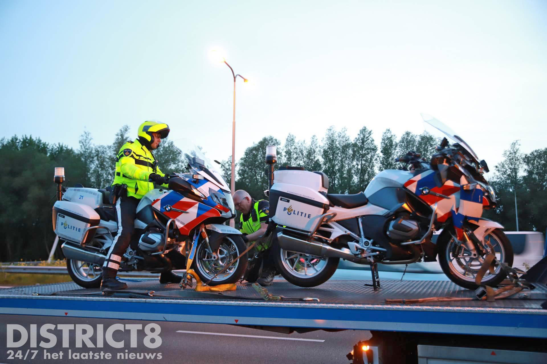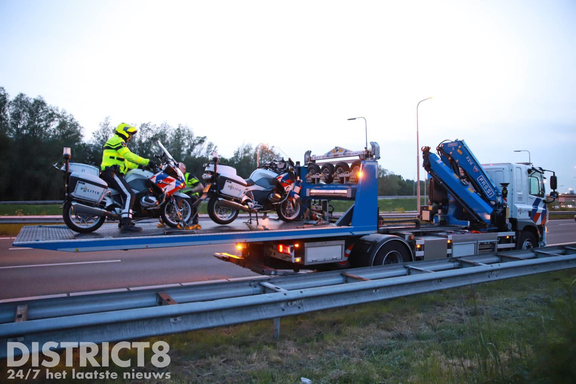 Team Transport van de politie kwam met een bergingsvoertuig ter plaatse om de beschadigde motoren op te halen. Door het ongeval was één rijstrook afgesloten.