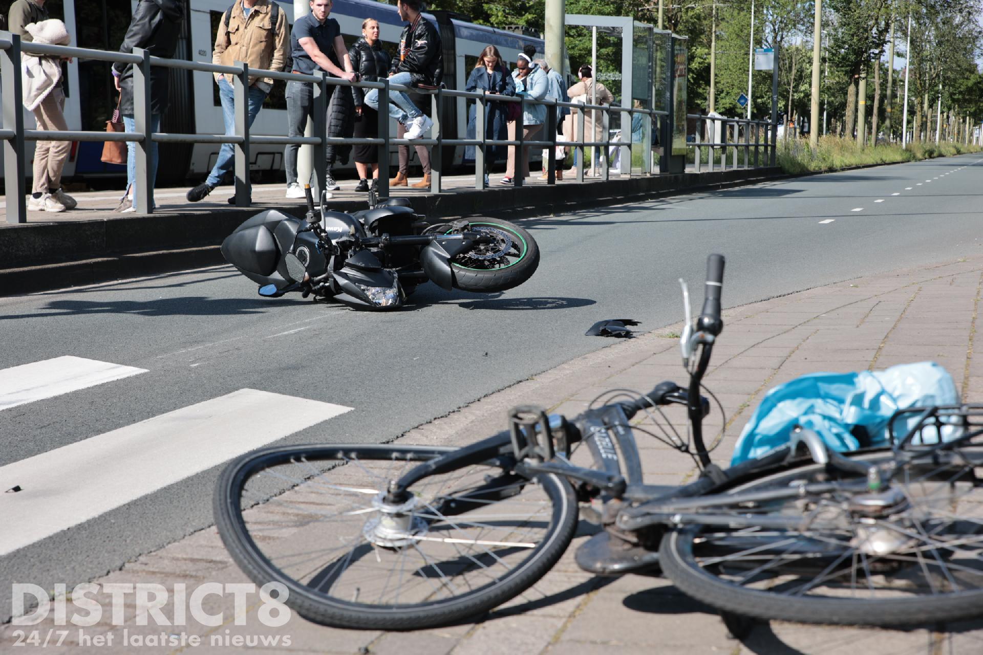 De Oude Haagweg richting de Thorbeckelaan is enige tijd gestremd geweest. De motor en fiets hebben beide forse schade opgelopen. Ook stond het tramverkeer enige tijd gestremd.