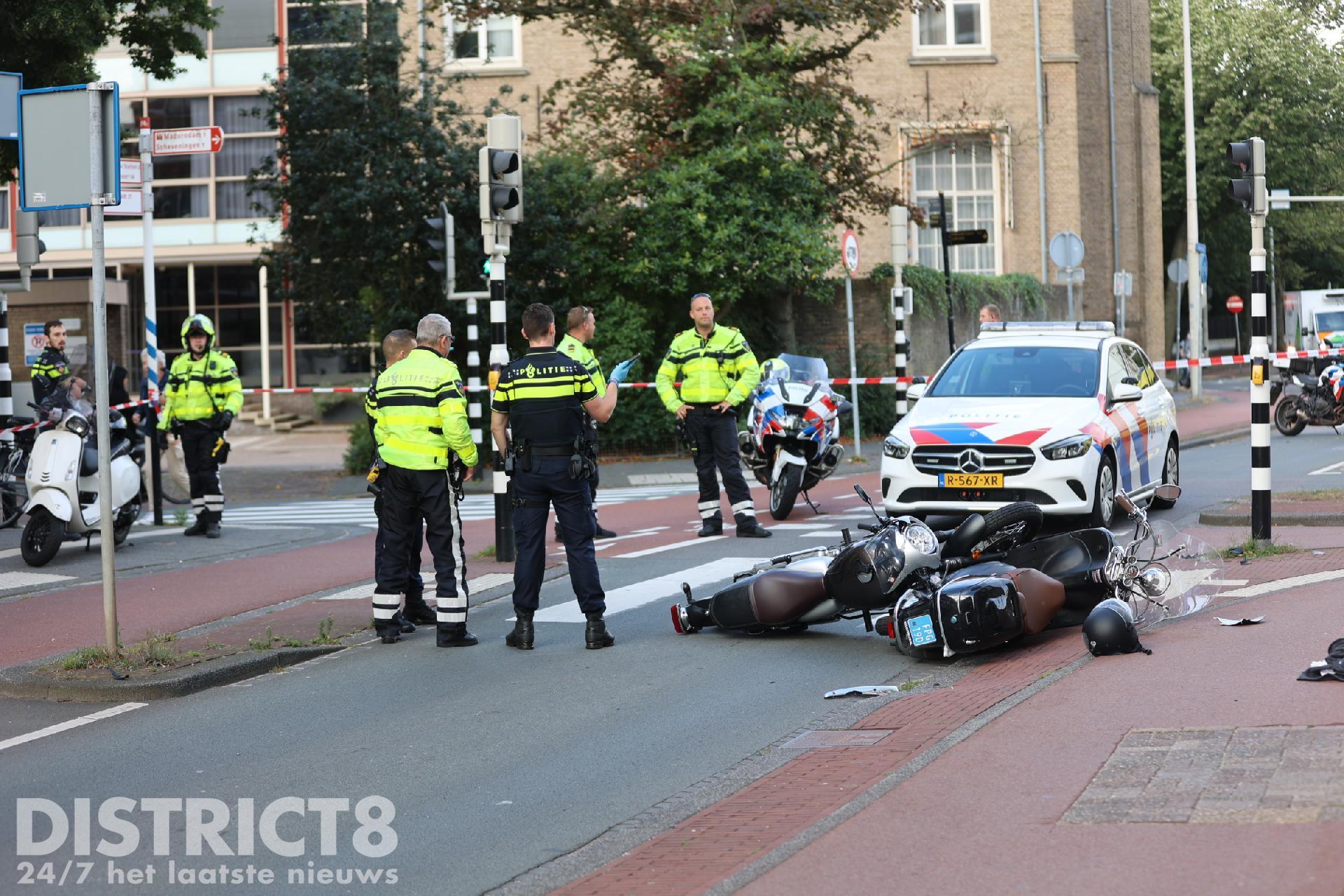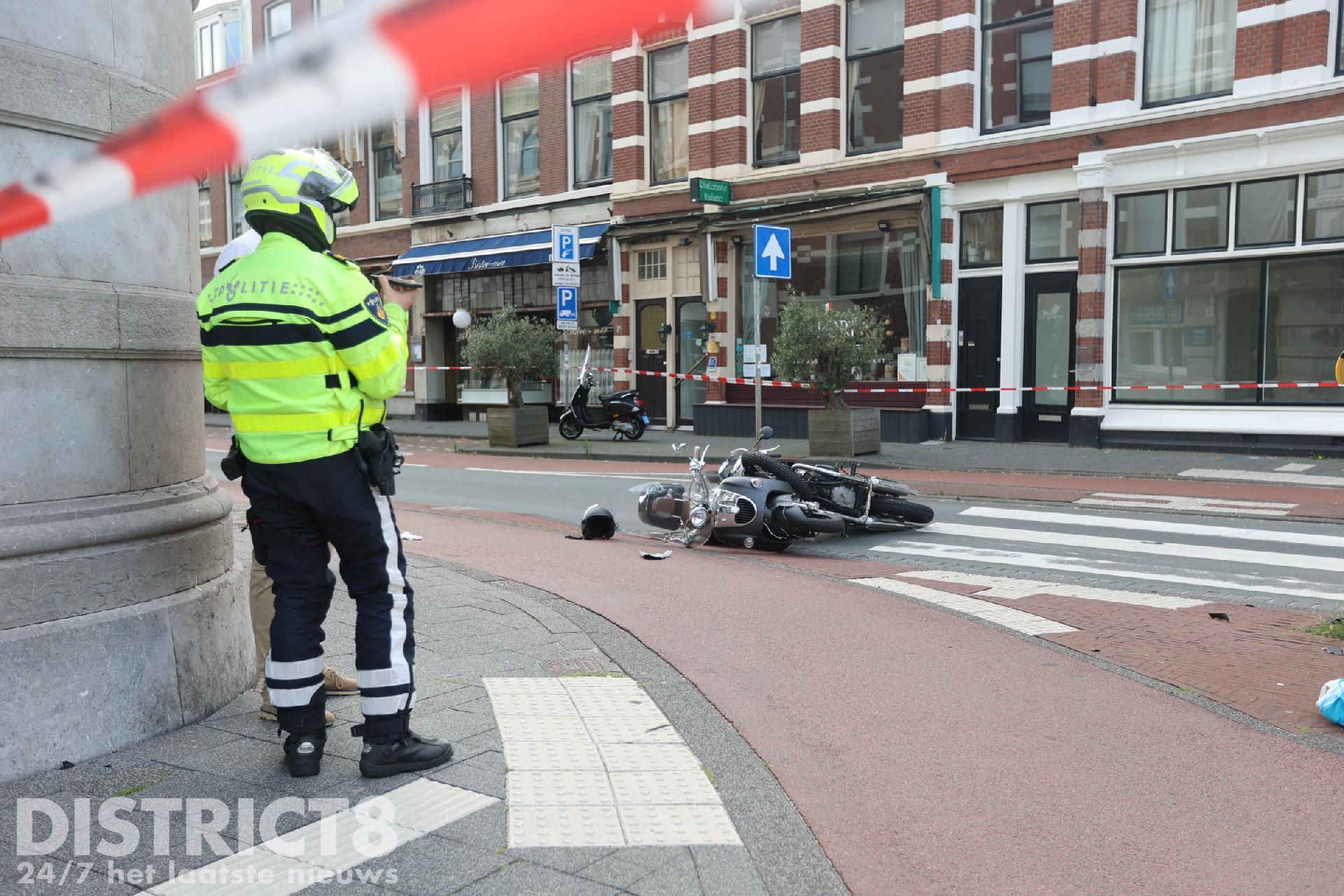 De botsing heeft plaatsgevonden op de oversteekplaats vlakbij het Nassauplein. De scooterrijder en motorrijder raakten beiden gewond.