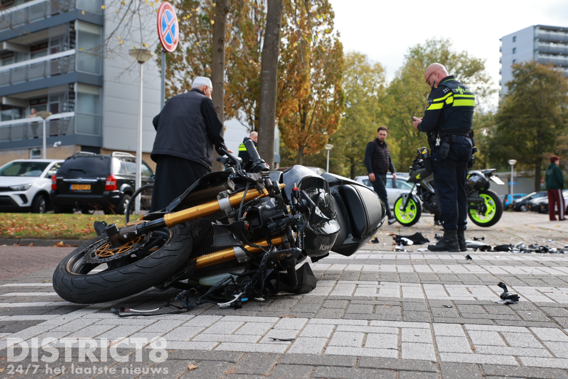 Even voor twee uur ging het mis. De motorrijder reed op de Griegstraat toen een automobilist vanuit de tegenovergestelde richting wilde afslaan. Daarbij zag de bestuurder de motorrijder over het hoofd. Ondanks een rempoging kon de motorrijder een botsing niet voorkomen.