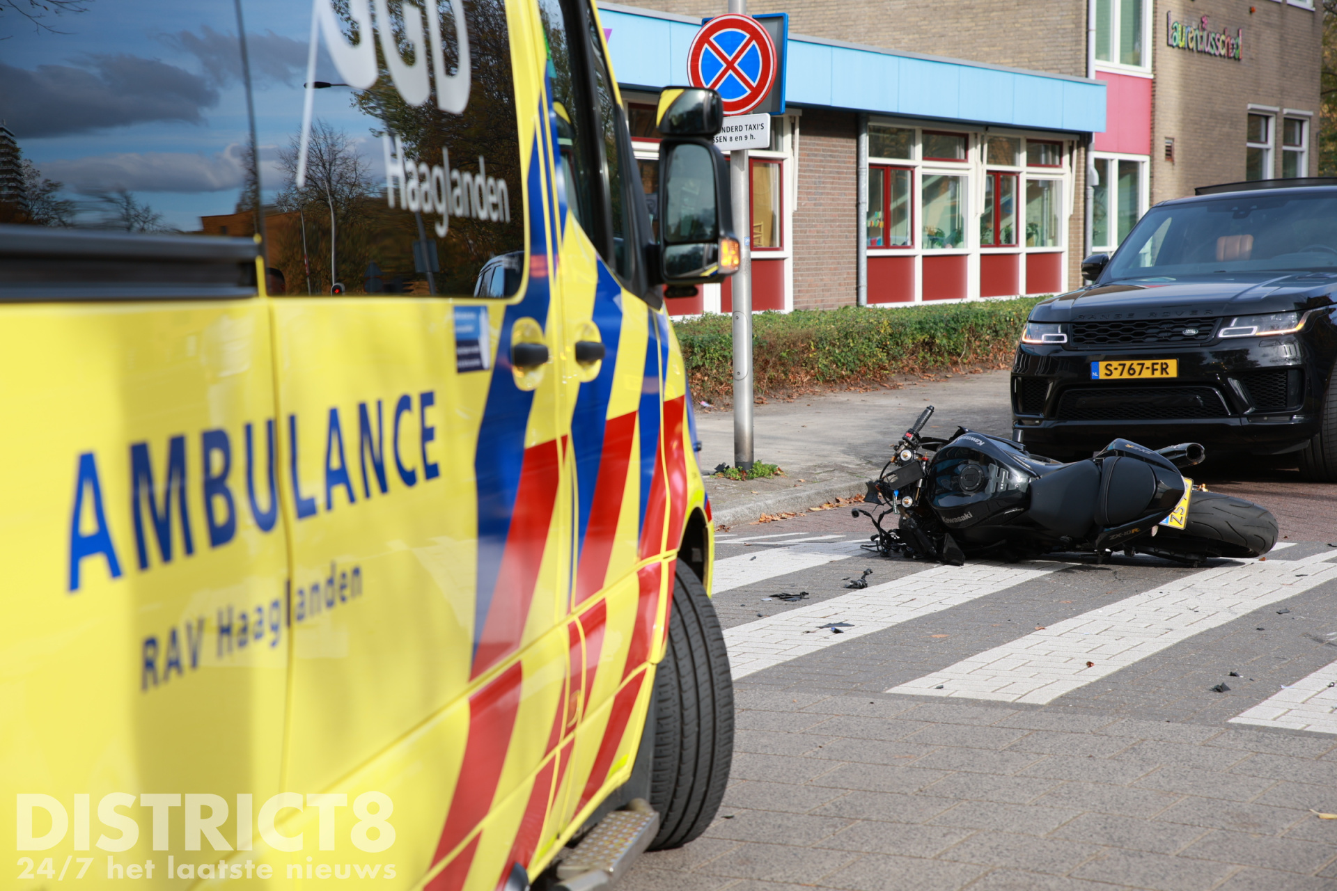 Delft – Op zaterdagmiddag 18 oktober is een motorrijder gewond geraakt bij een aanrijding op de Griegstraat in Delft. De motorrijder botste op een afslaande auto ter hoogte van de Rossinistraat.