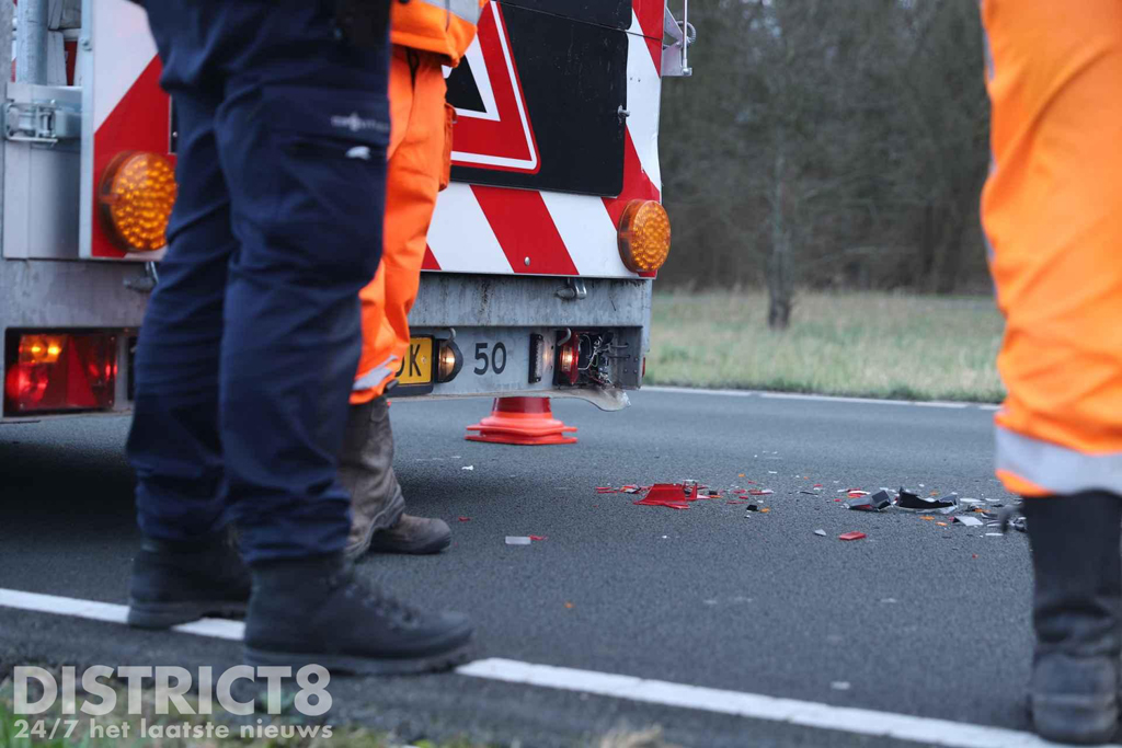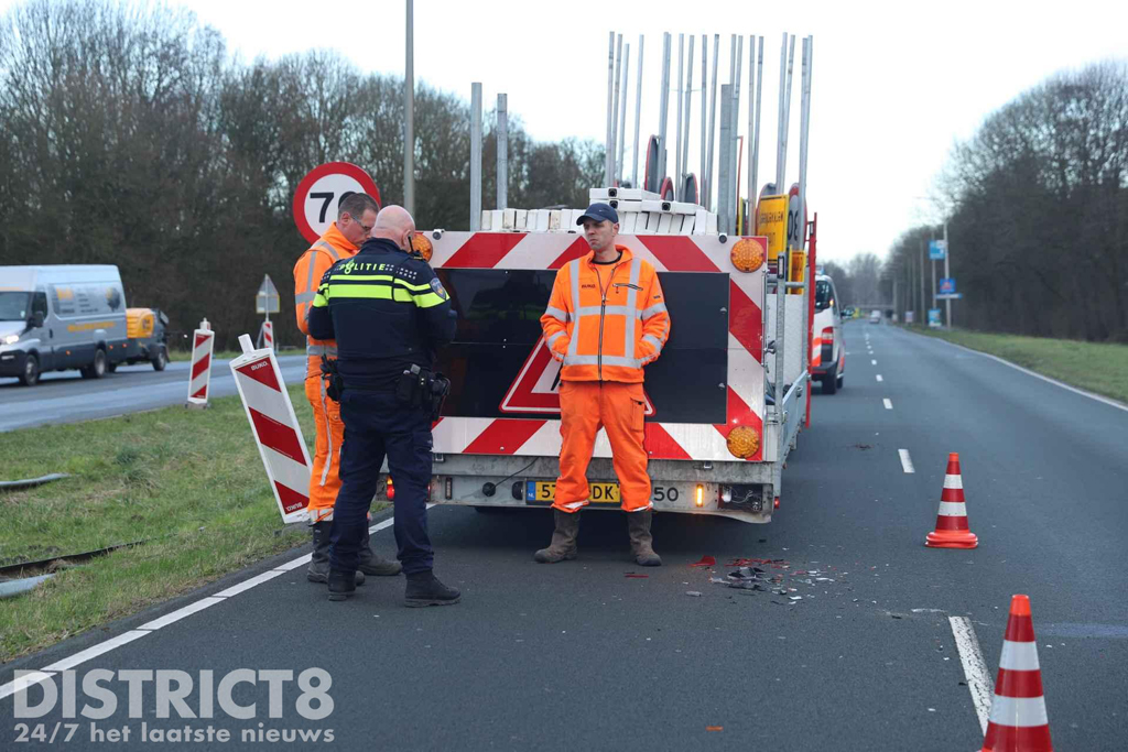 De aanhanger stond daar in verband met werkzaamheden. De motorrijder reed tegen de achterkant van de aanhanger en raakte gewond.