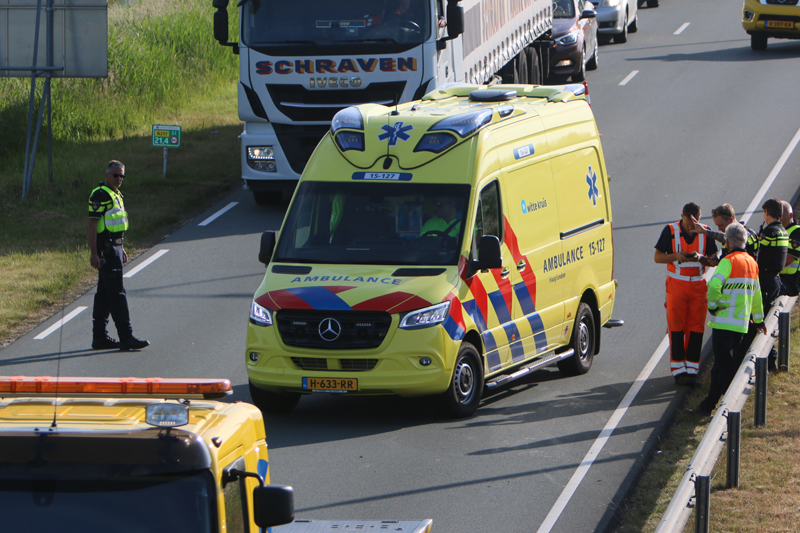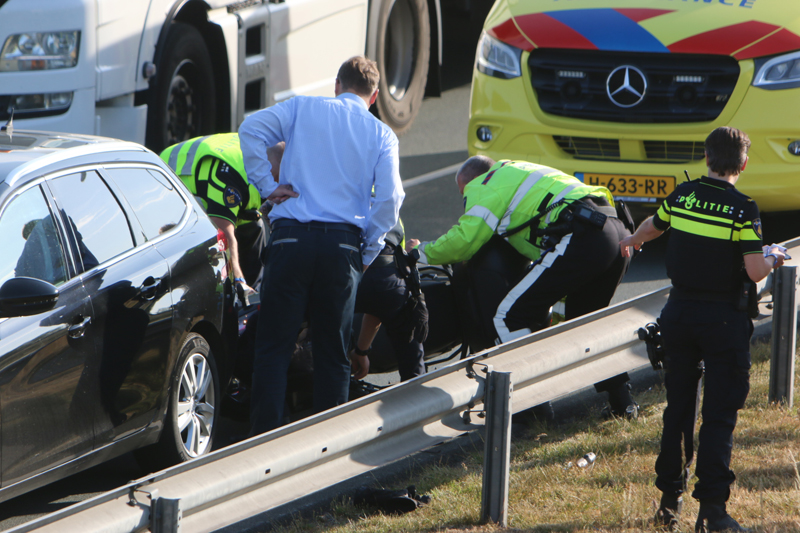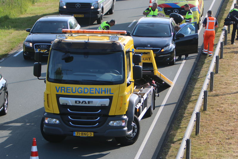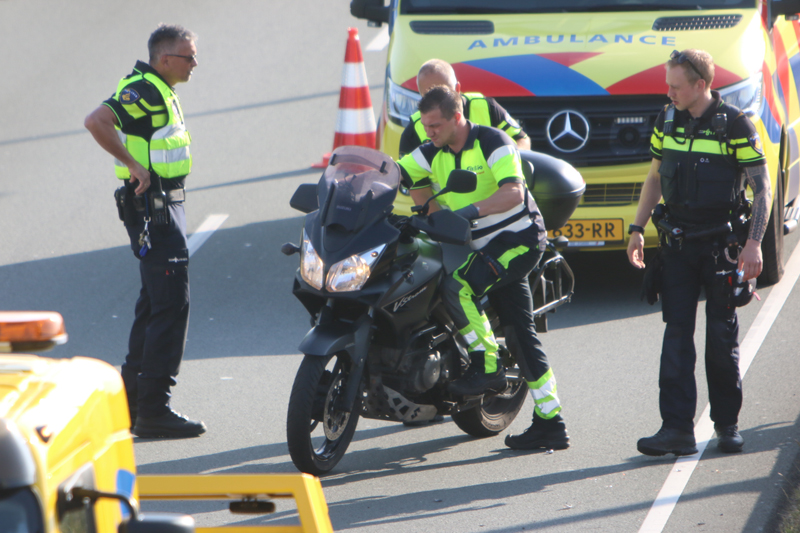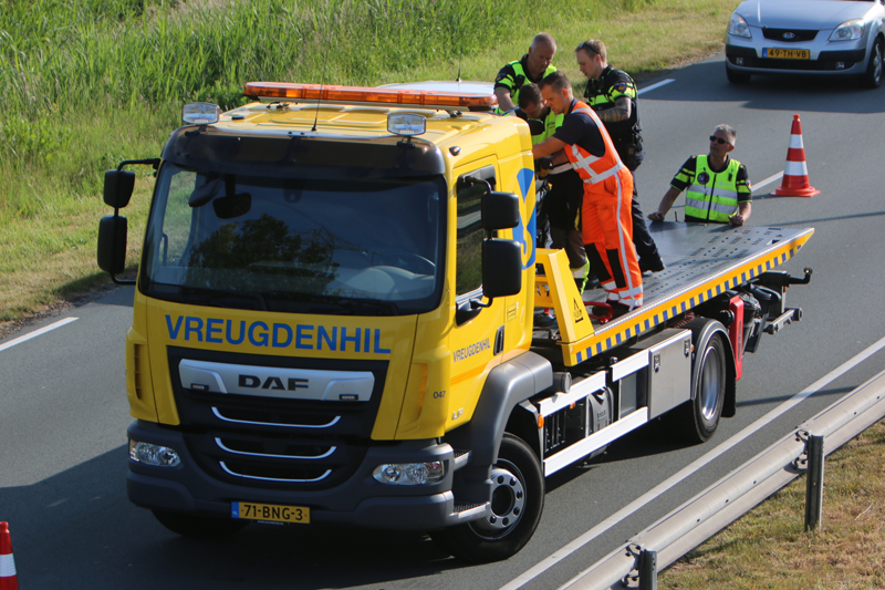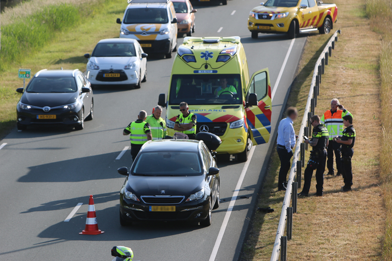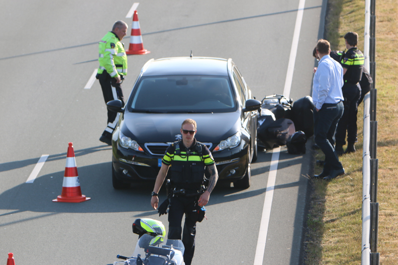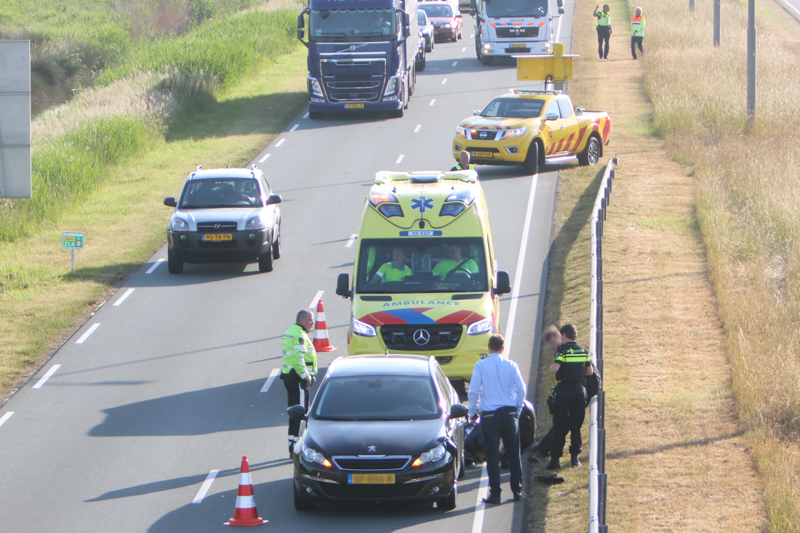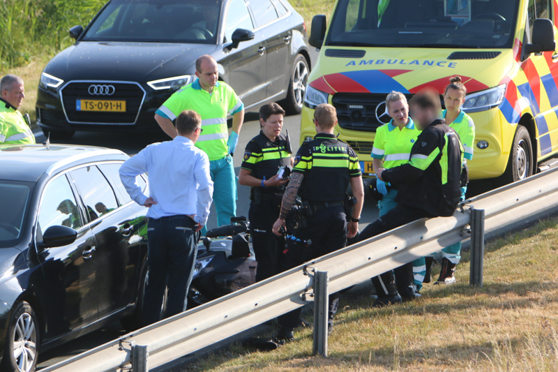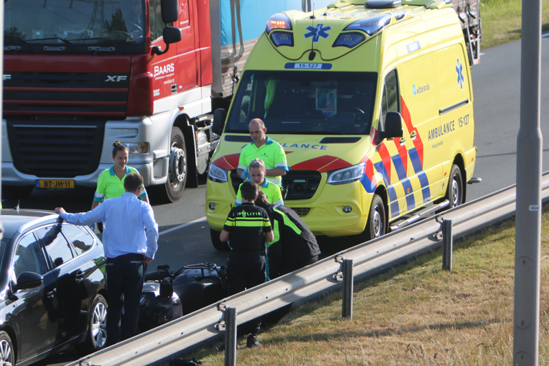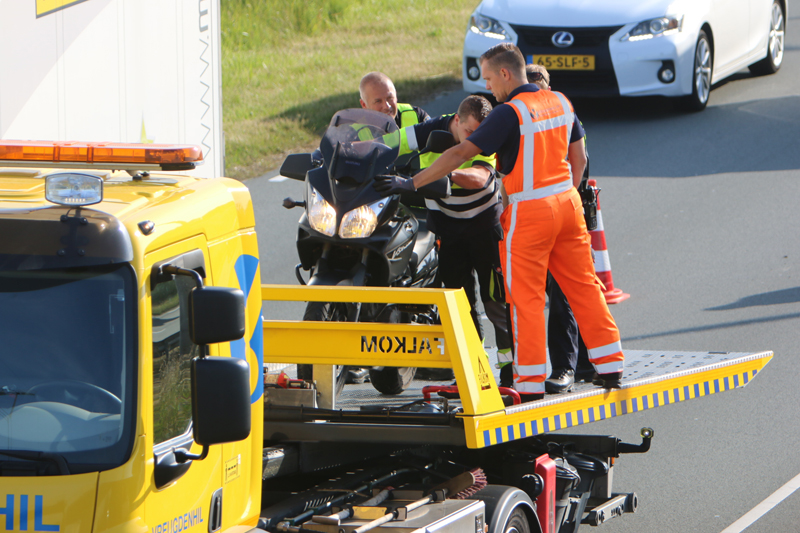 Een berger kwam ter plaatse om de motor af te slepen. De auto liep alleen maar lichte blikschade op.