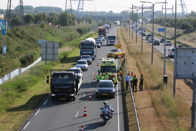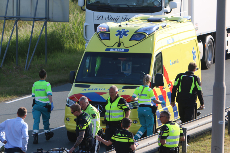Een automobilist die vanaf de A4 richting Wateringen reed, moest vanmorgen remmen in verband met de drukte voor de verkeerslichten bij de Veilingroute. Een motorrijder zag de auto te laat en knalde achterop.