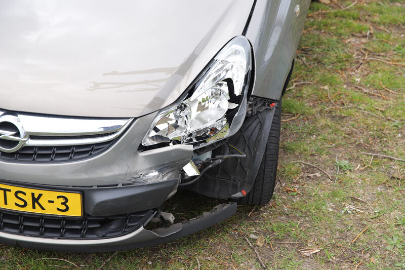 Zowel de motor als de auto hebben schade door het ongeval. De auto zal door een berger worden afgesleept.