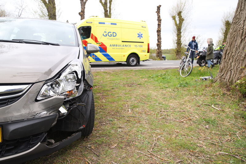 Schipluiden – Op de Schieweg in Schipluiden heeft zondagmiddag 25 april een aanrijding plaatsgevonden tussen een motor en een auto.
