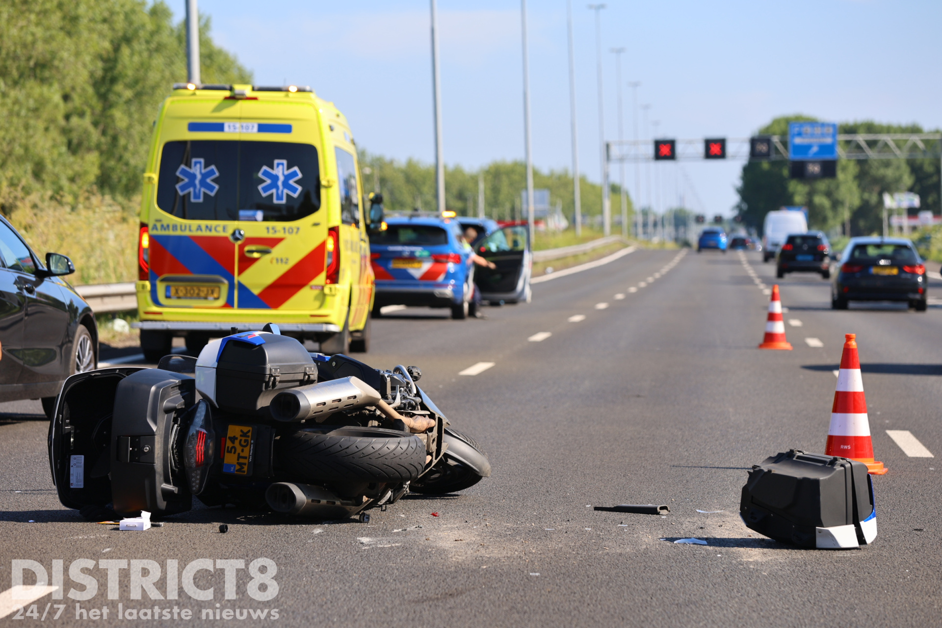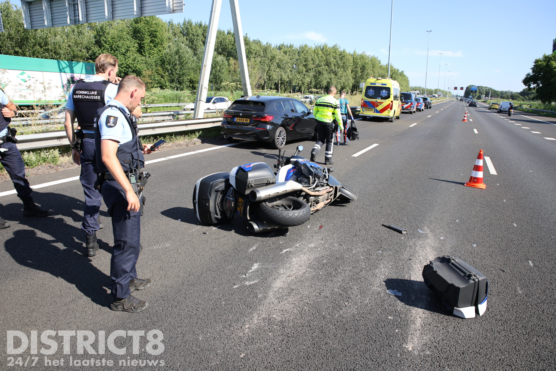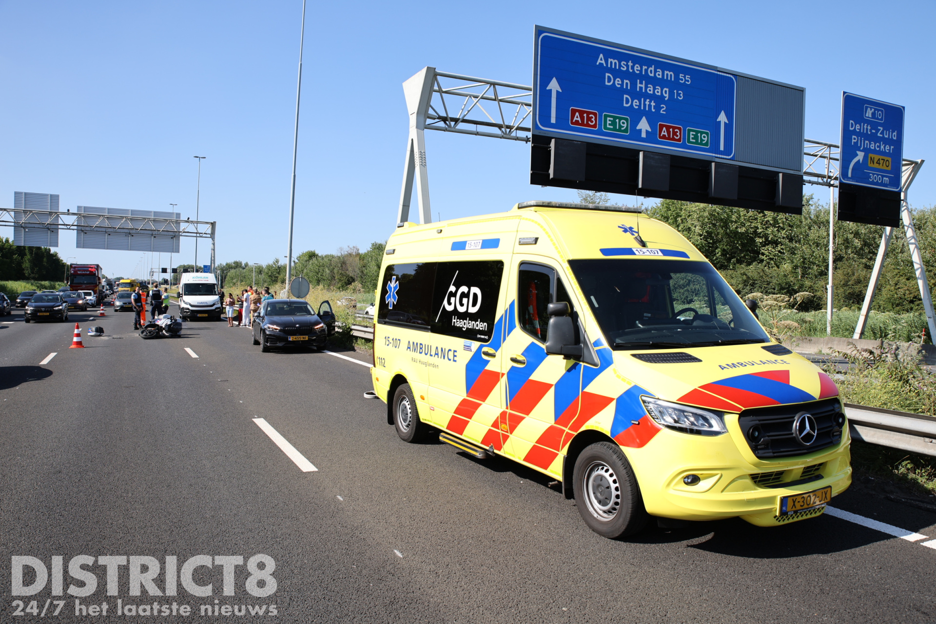 Delft – Bij een ongeval op de A13 bij Delft is maandagmiddag 30 juni een motorrijder gewond geraakt. Omstreeks 17:10 kwam de motor in botsing met een auto, het lijkt erop dat het mis is gegaan tijdens het verwisselen van rijstrook door de automobilist.