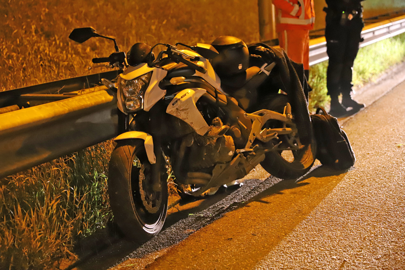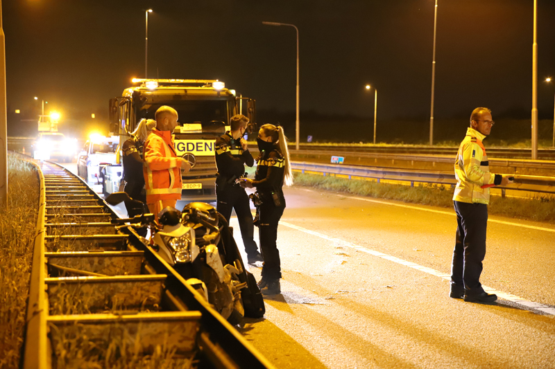 Een berger van Vreugdenhil reed op de A4 en wilde bij Den Hoorn de afrit nemen. Tot zijn verbazing zag hij plotseling een motorrijder op de grond liggen. Door nog onbekende oorzaak kwam de motorrijder ten val.