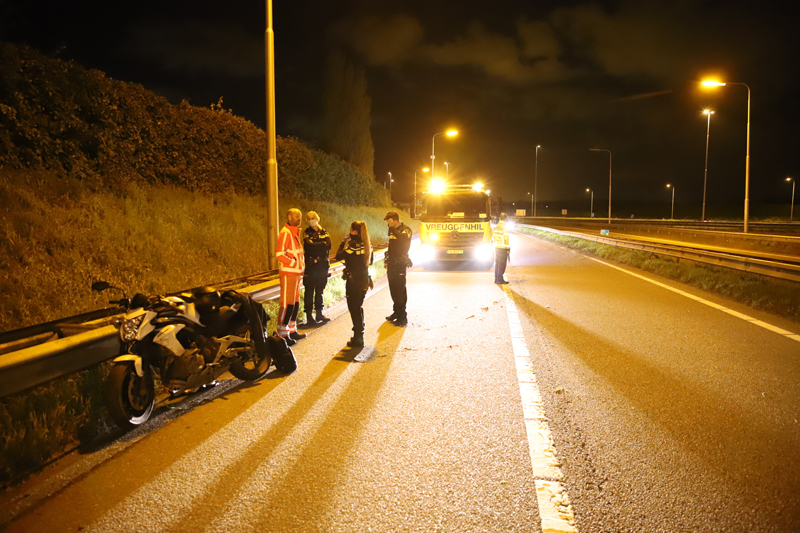 Den Hoorn – Op de afrit van de A4 bij Den Hoorn is in de nacht van zaterdag op zondag een motorrijder ten val gekomen. De motorrijder raakte lichtgewond.