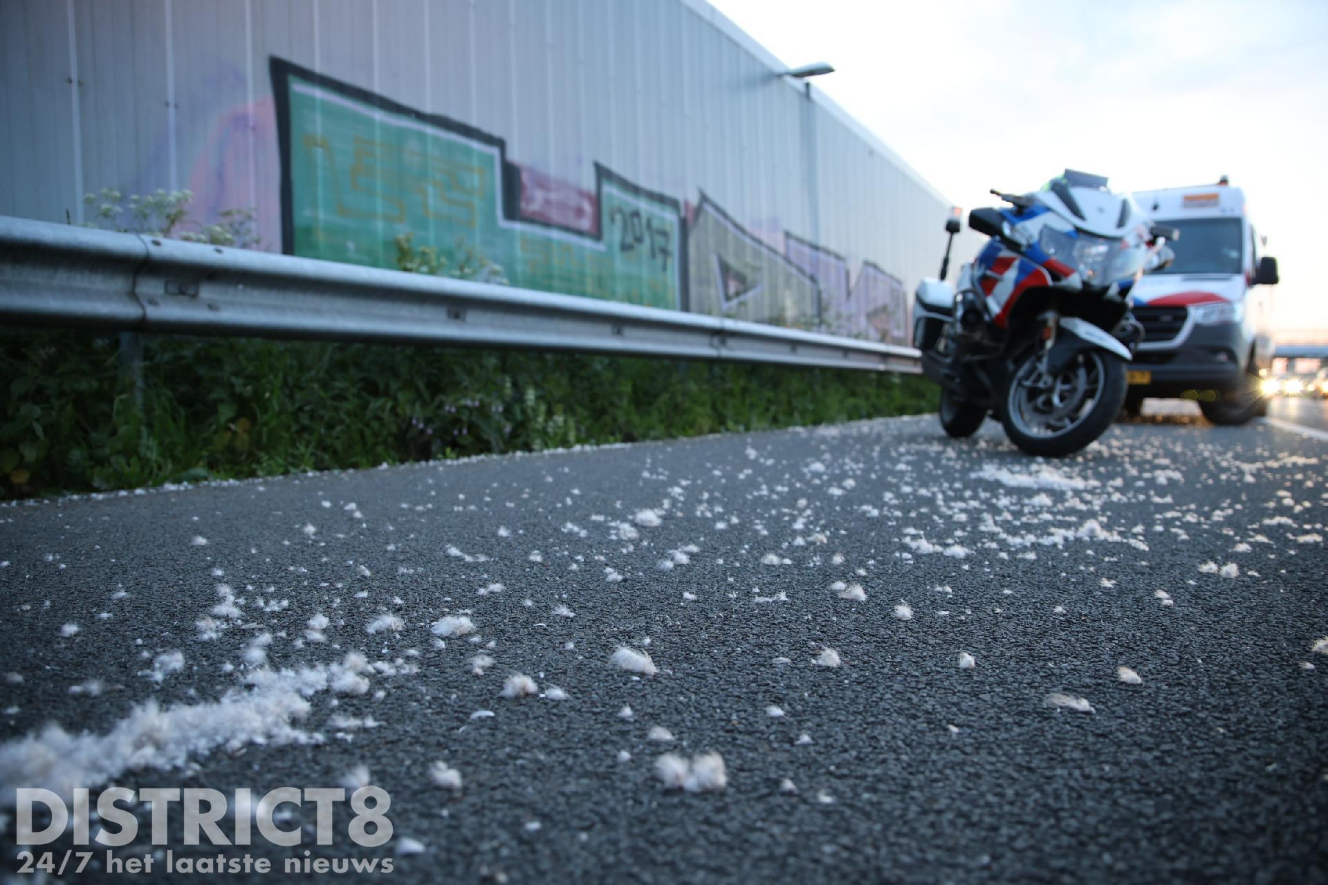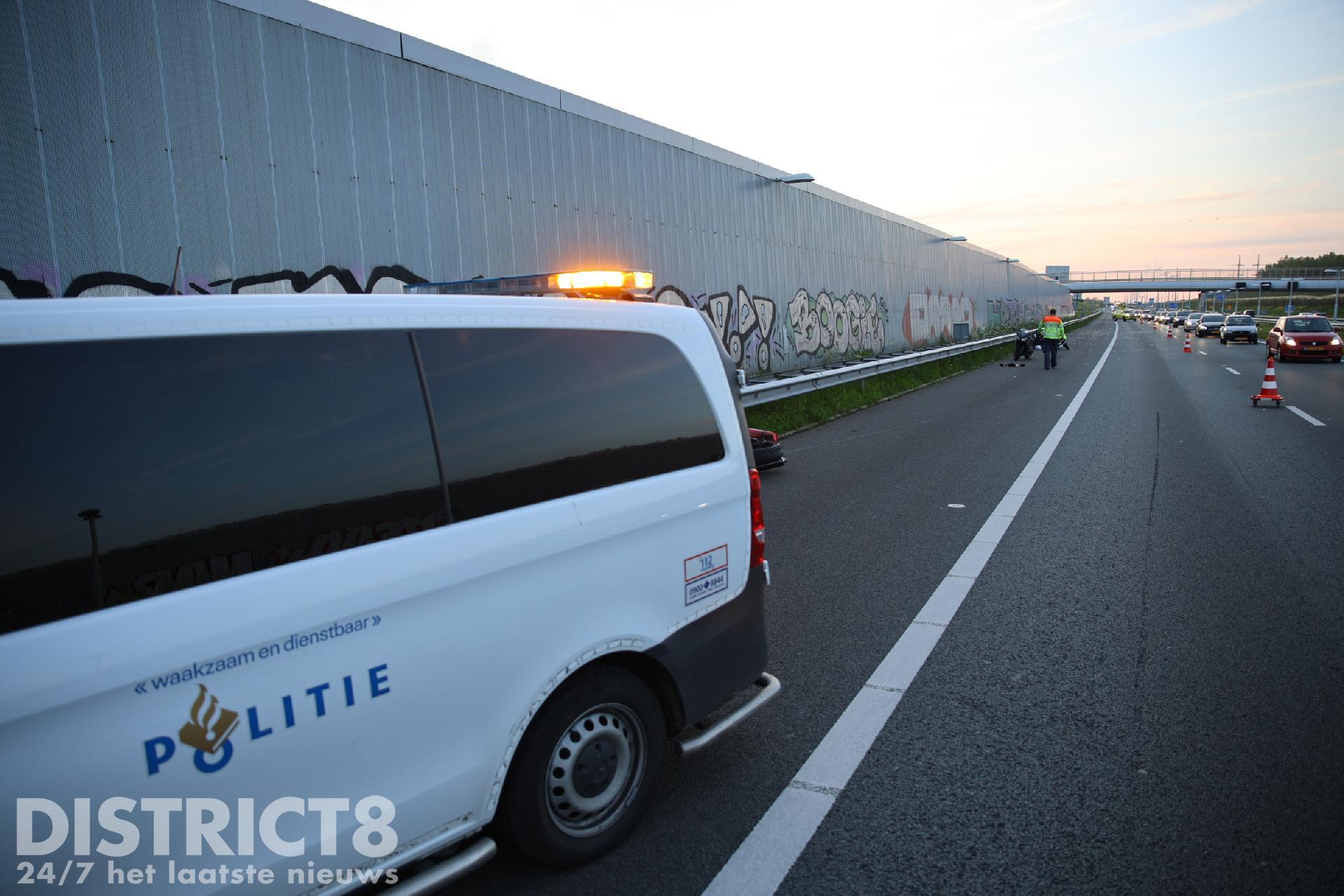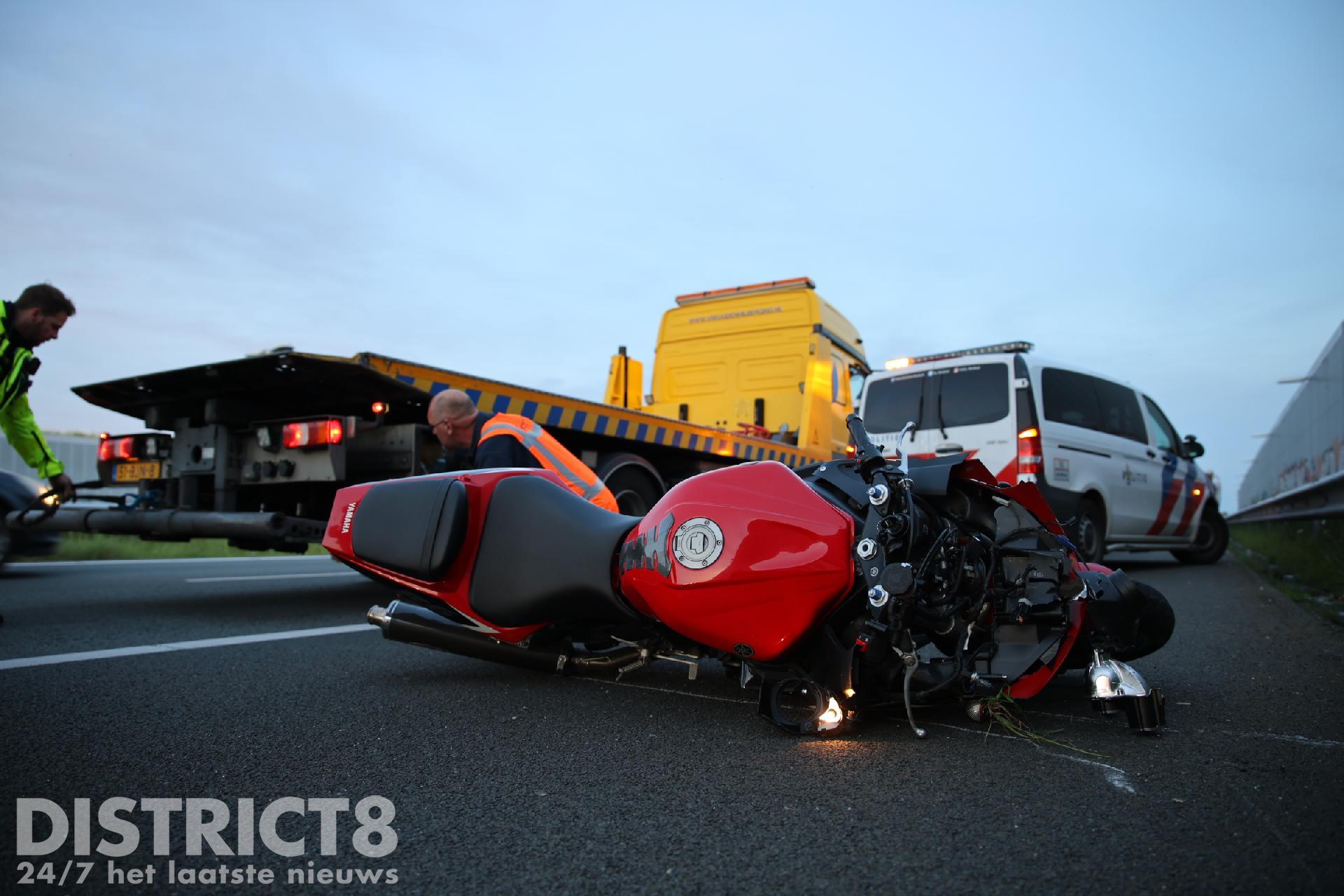 Meerdere politie-eenheden en een ambulance werden met spoed opgeroepen, samen met het MMT per auto uit Rotterdam. Bij aankomst is één rijstrook in de richting van Rotterdam afgesloten. De motorrijder kwam hard ten val; over de vluchtstrook liggen veel veren, dit zijn van de motorrijder zijn jas die kapot is gegaan tijdens de val.