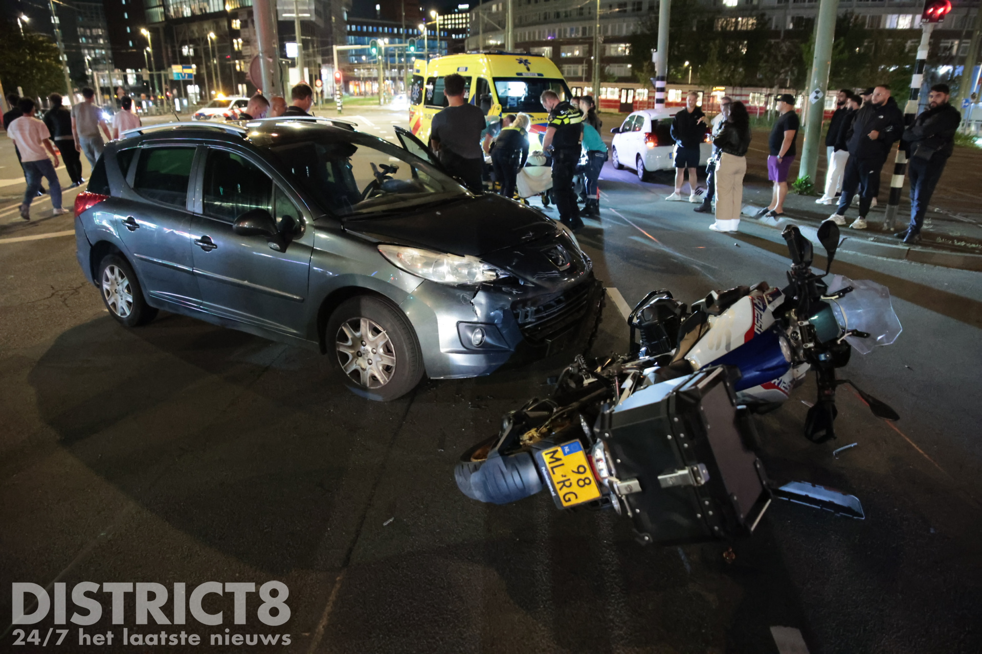 Op de grote kruising kwamen een motorrijder en een personenauto met elkaar in botsing. De motorrijder kwam na de aanrijding hard ten val en raakte gewond. Veel omstanders zagen het incident gebeuren en schakelden direct de hulpdiensten in.