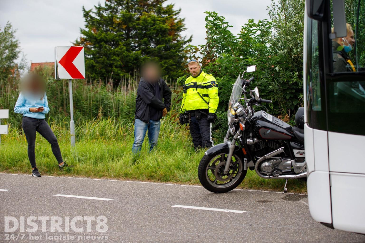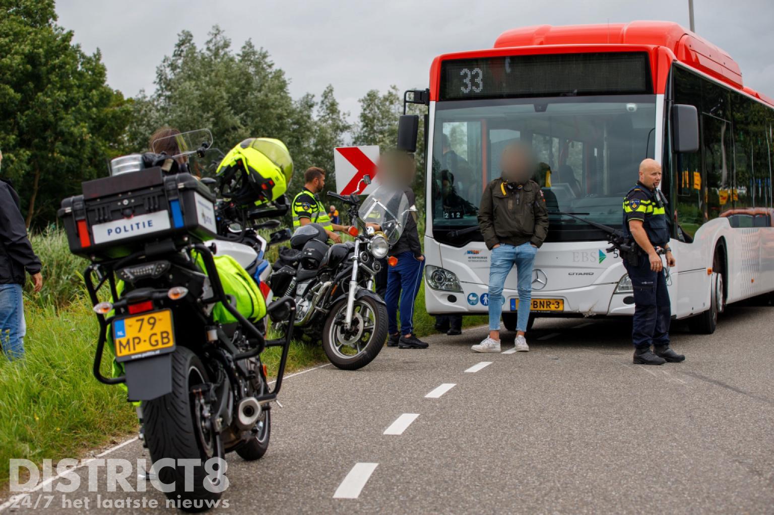 Een ambulance is nog gekomen om de motorrijders na te kijken, maar beide kwamen er wonderwel zonder kleerscheuren vanaf. De schade aan de lijnbus viel mee.