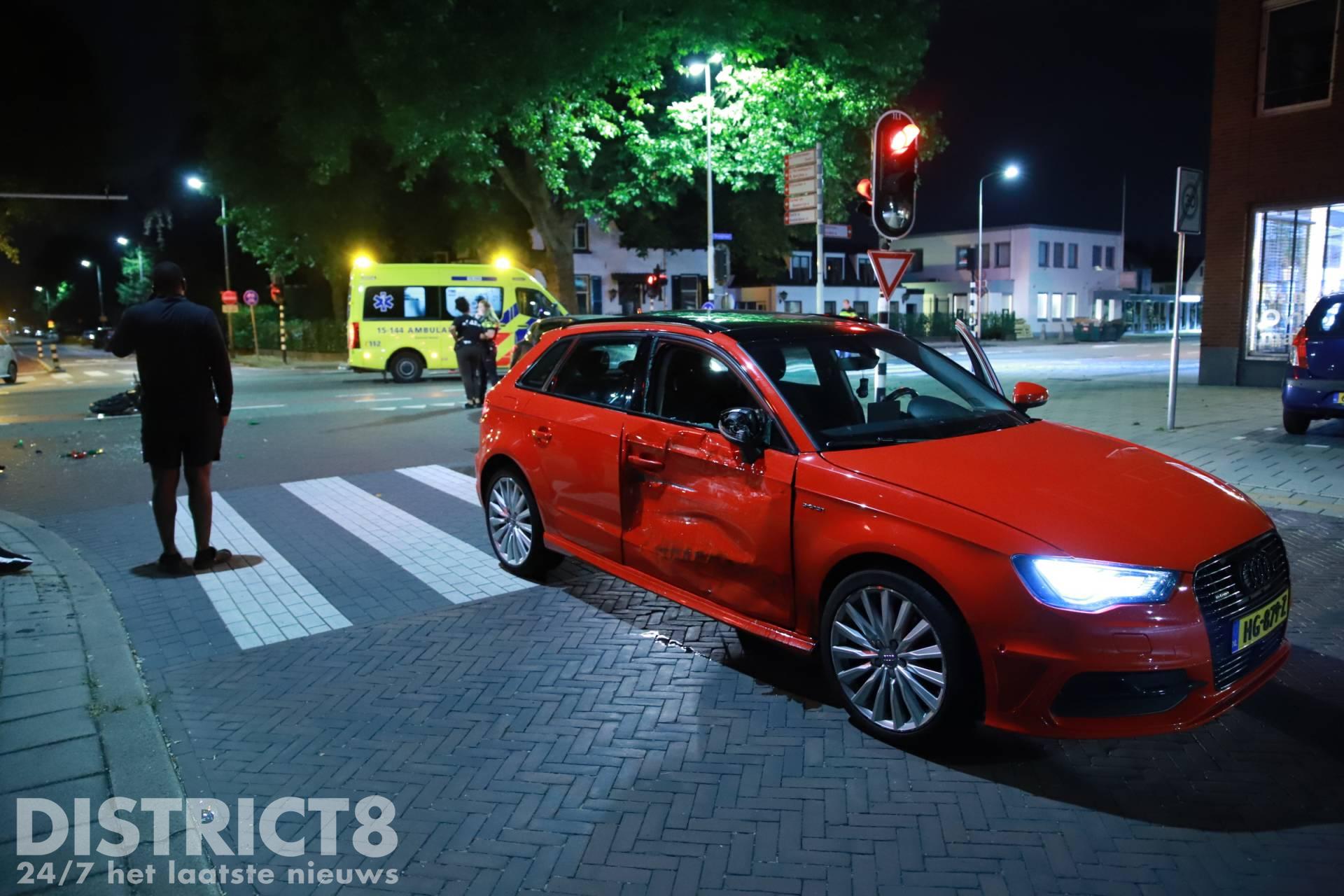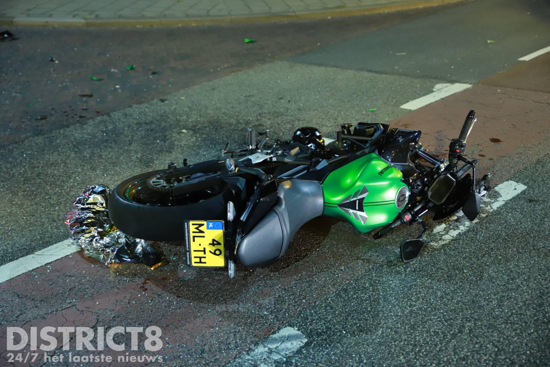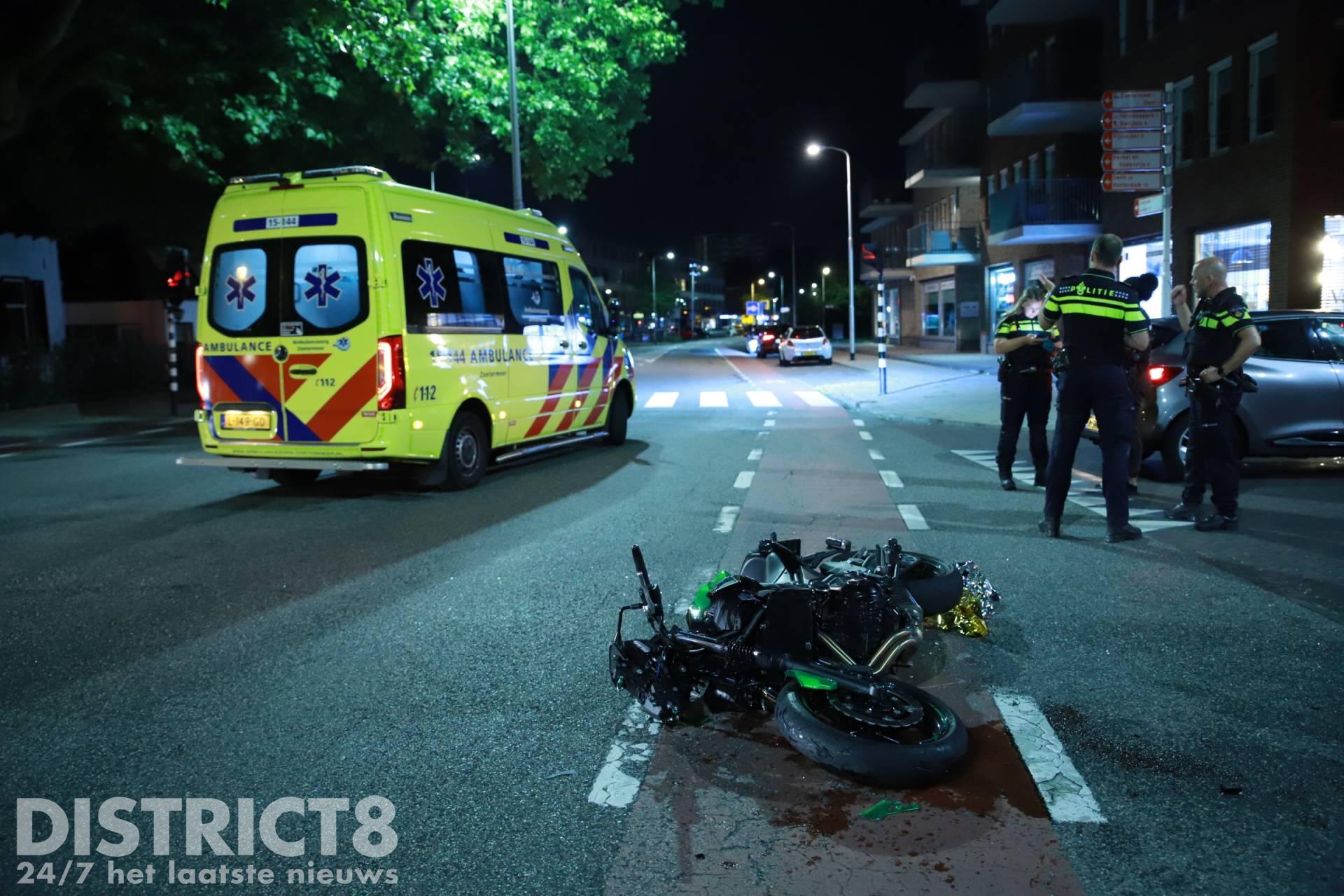 De motorrijder raakte hierbij gewond, na behandeling is het slachtoffer naar het ziekenhuis vervoerd.