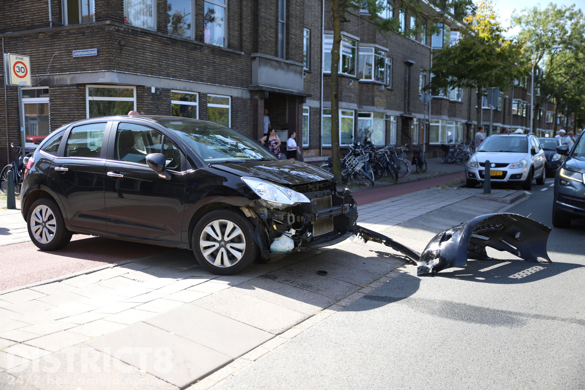 De auto liep flinke schade op en werd door de klap enkele meters naar achteren geduwd.