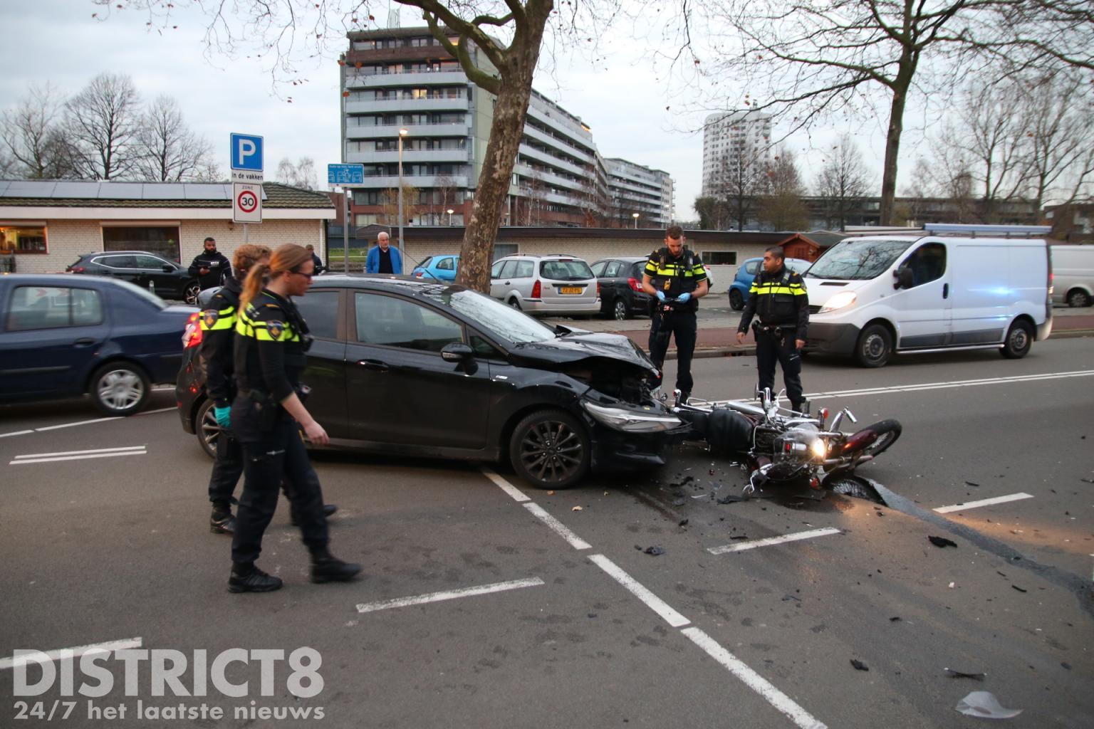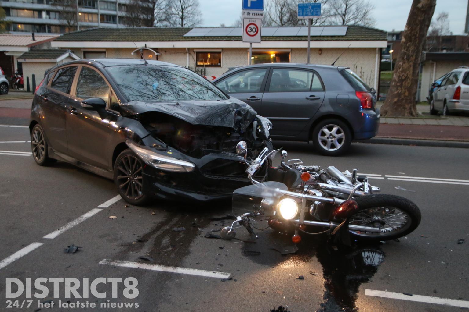 Een motorrijder probeerde de drukte te omzeilen door tegen de richting over de Troelstrakade te rijden. Een auto die vanaf rechts uit een uitrit kwam en linksaf wilde slaan kon de motorrijder niet zien en verwachtte deze ook niet.