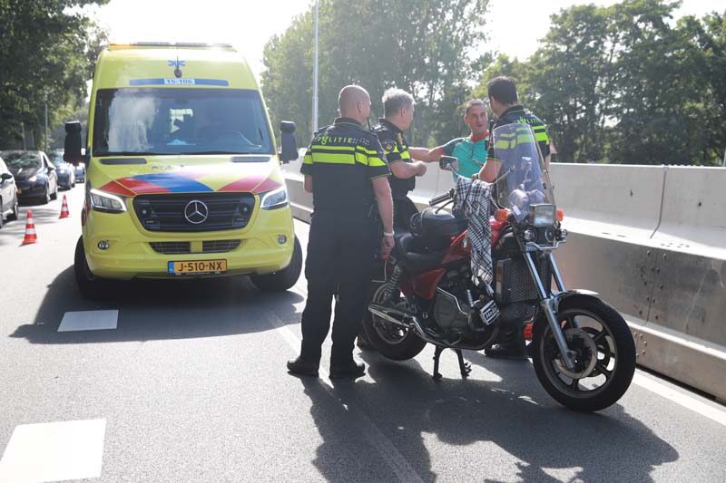Een berger zal ter plaatse komen om de motor te bergen. De personenauto raakte licht beschadigd.