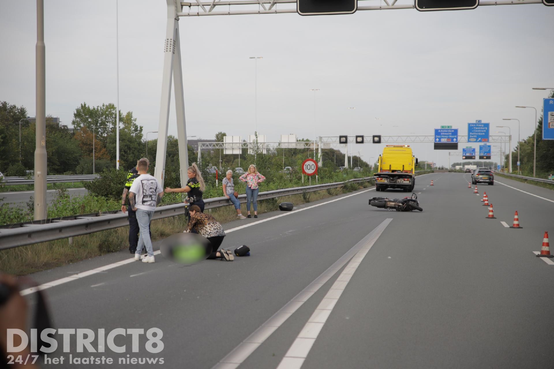 Rijswijk – Zaterdagmiddag 16 september is op de A4 (hectometerpaal 49,5) ter hoogte van knooppunt Plaspoelpolder een motorrijdster ten val gekomen.