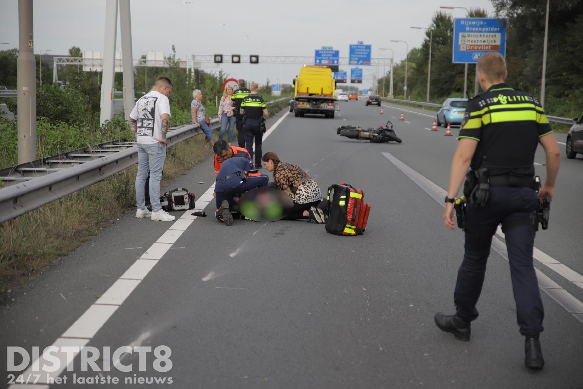 Toen eenmaal de ambulance en het MMT ter plaatse kwamen begonnen zij direct met het stabiliseren van de motorrijdster. Als gevolg van de aanrijding zijn twee rijstroken afgesloten.