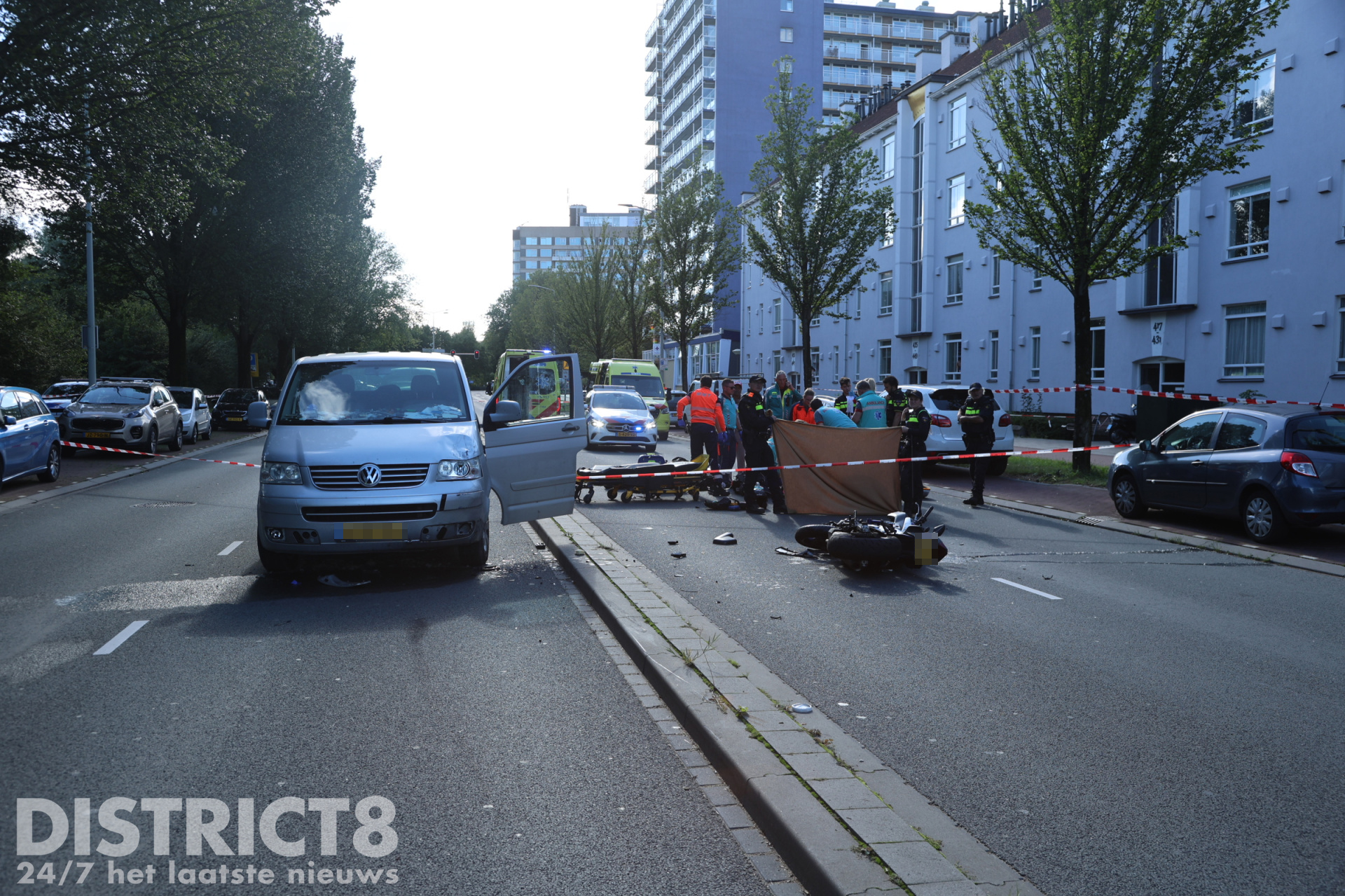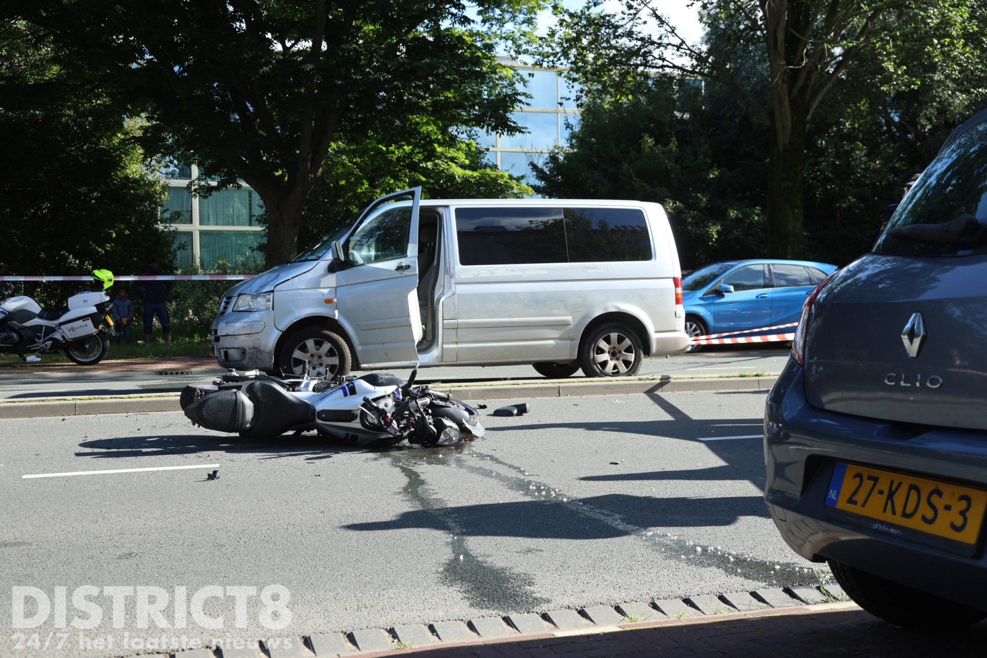 Den Haag – Vrijdagmiddag 13 september heeft er op de Erasmusweg in Den Haag een aanrijding plaatsgevonden tussen een motorrijdster en een busje. De motorrijdster kwam volgens getuigen vanuit de richting van de Troelstrakade richting het Erasmusplein.