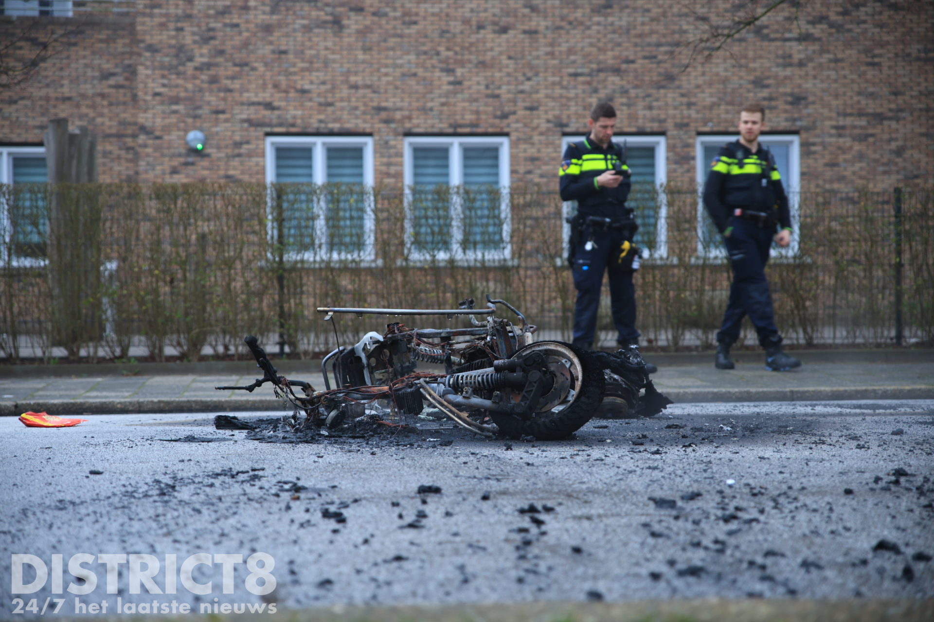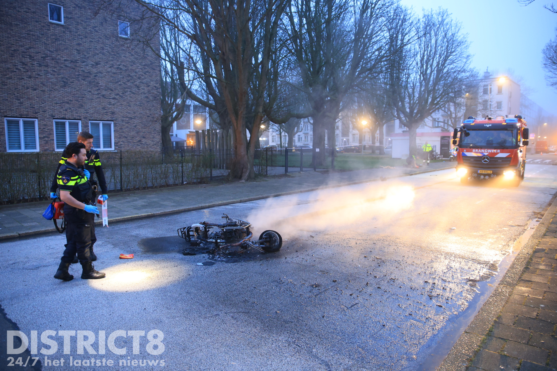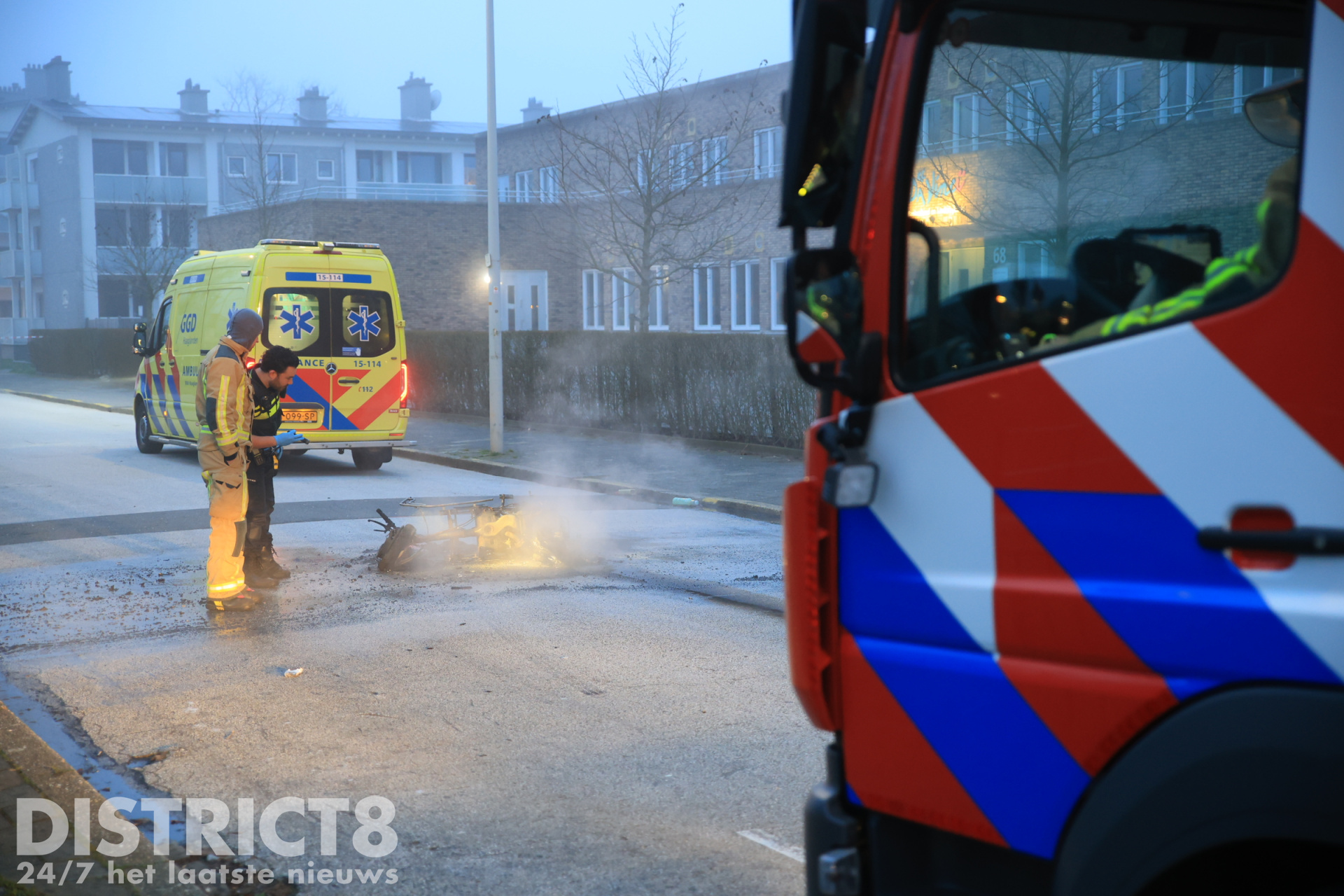 De brandweer heeft de brandende scooter geblust.