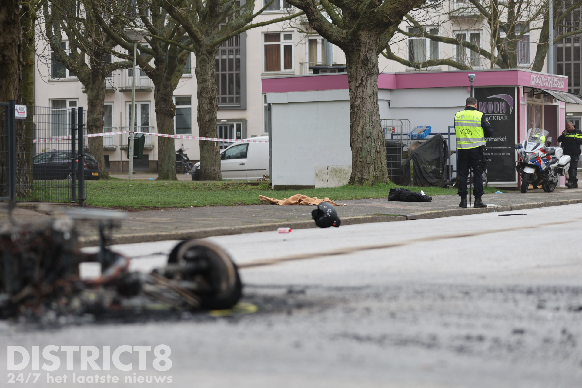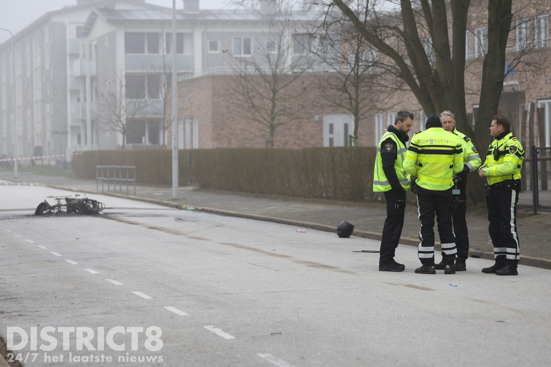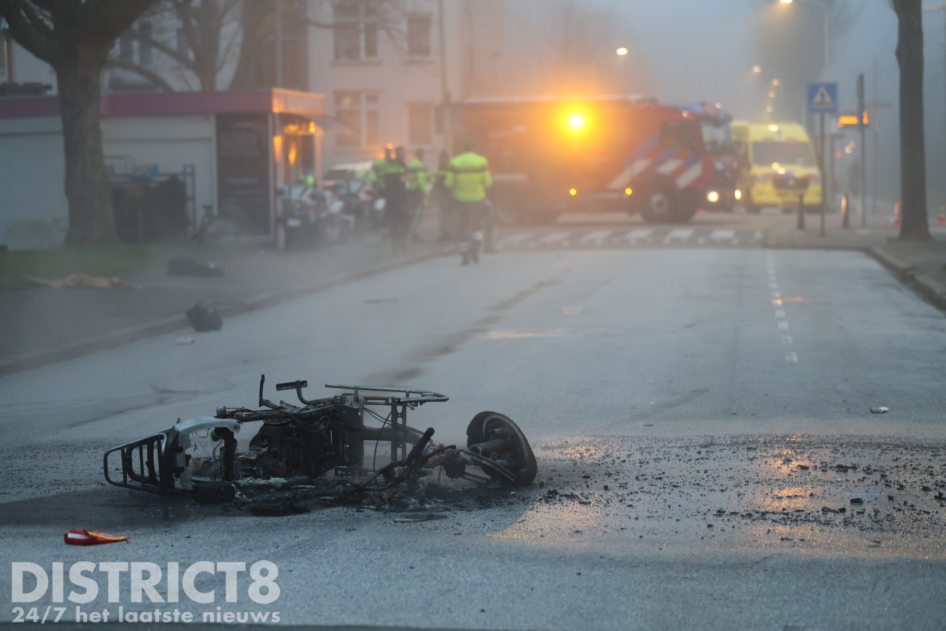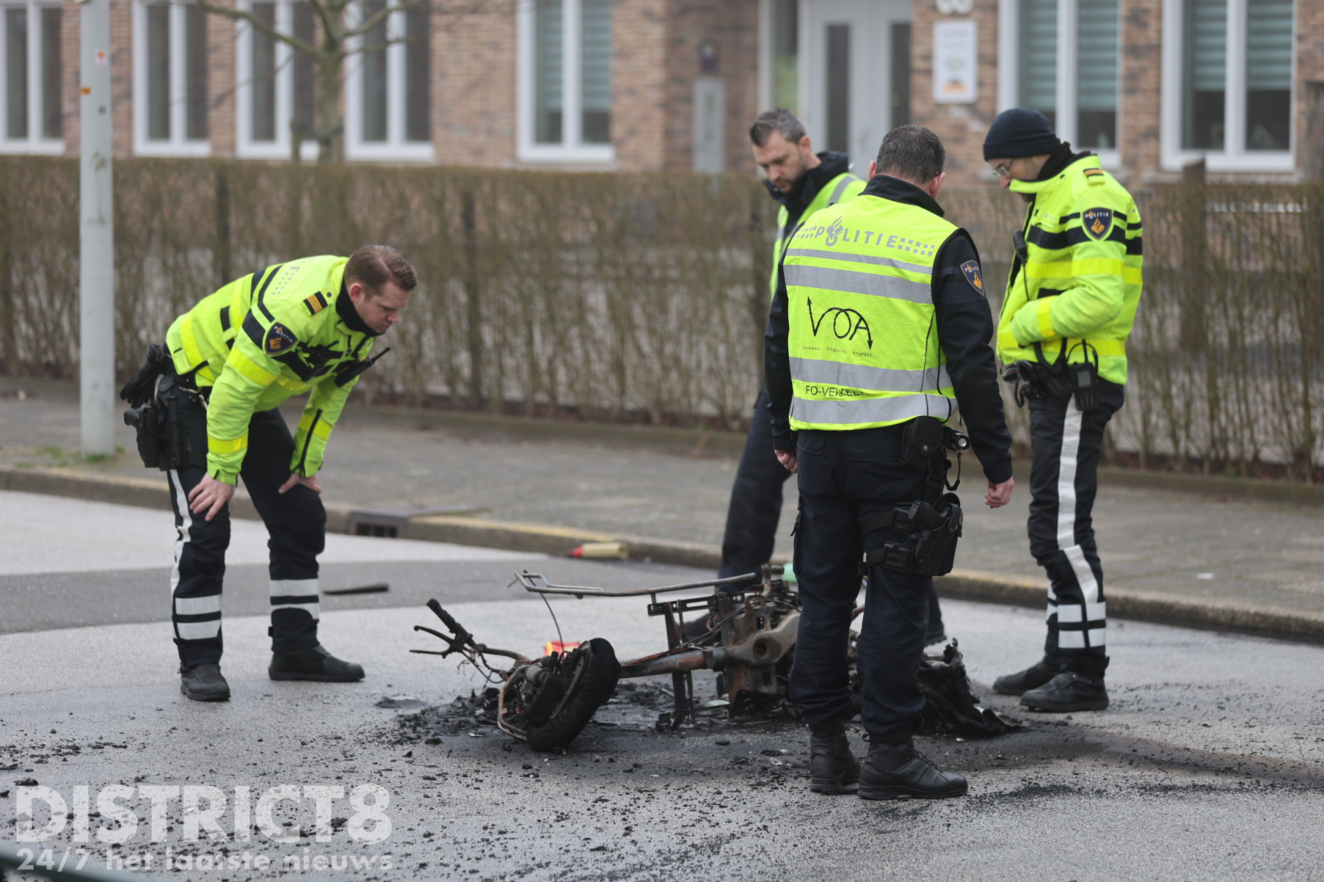 De brandweer heeft de brandende scooter geblust.