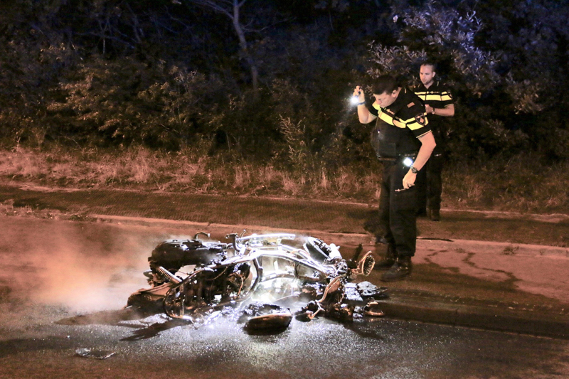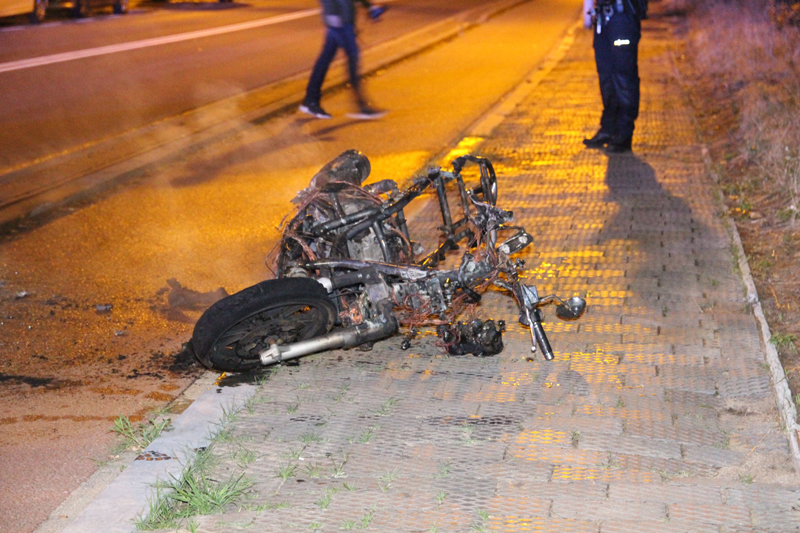 De brandweer kwam ter plaatse om het vuur de blussen. De motorscooter lag op de rijbaan. Maar in geen velden of wegen was er een eigenaar of bestuurder te bekennen.