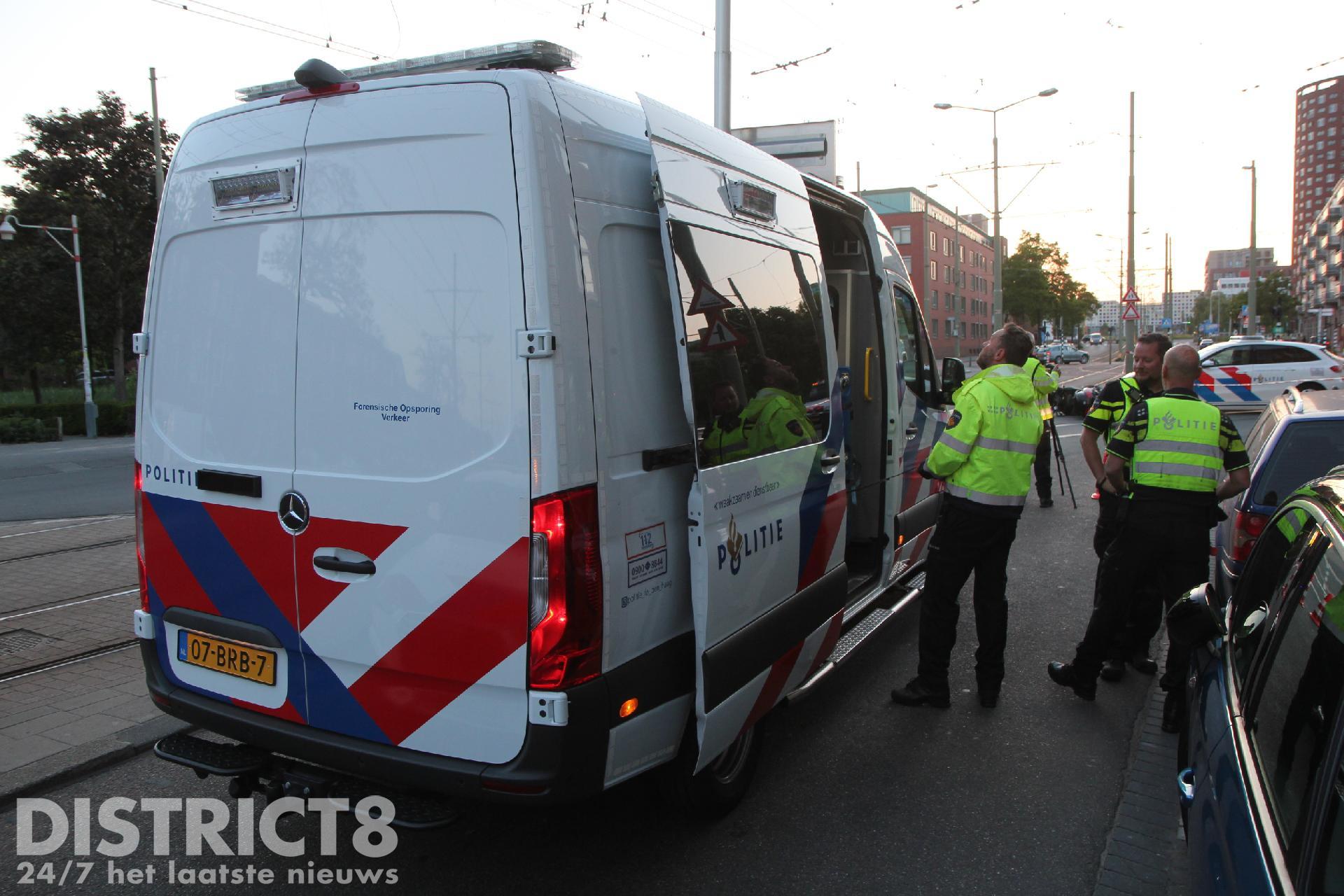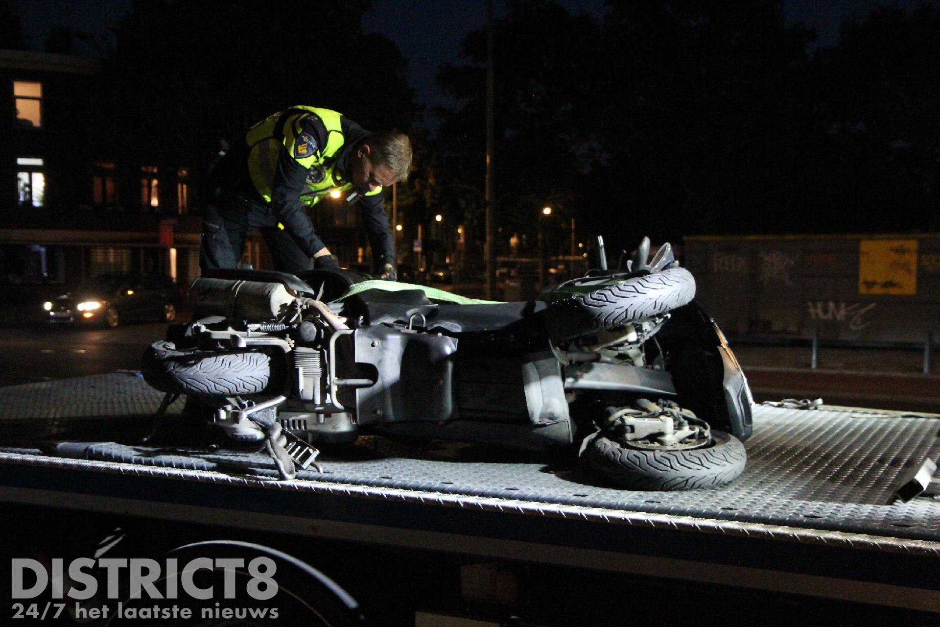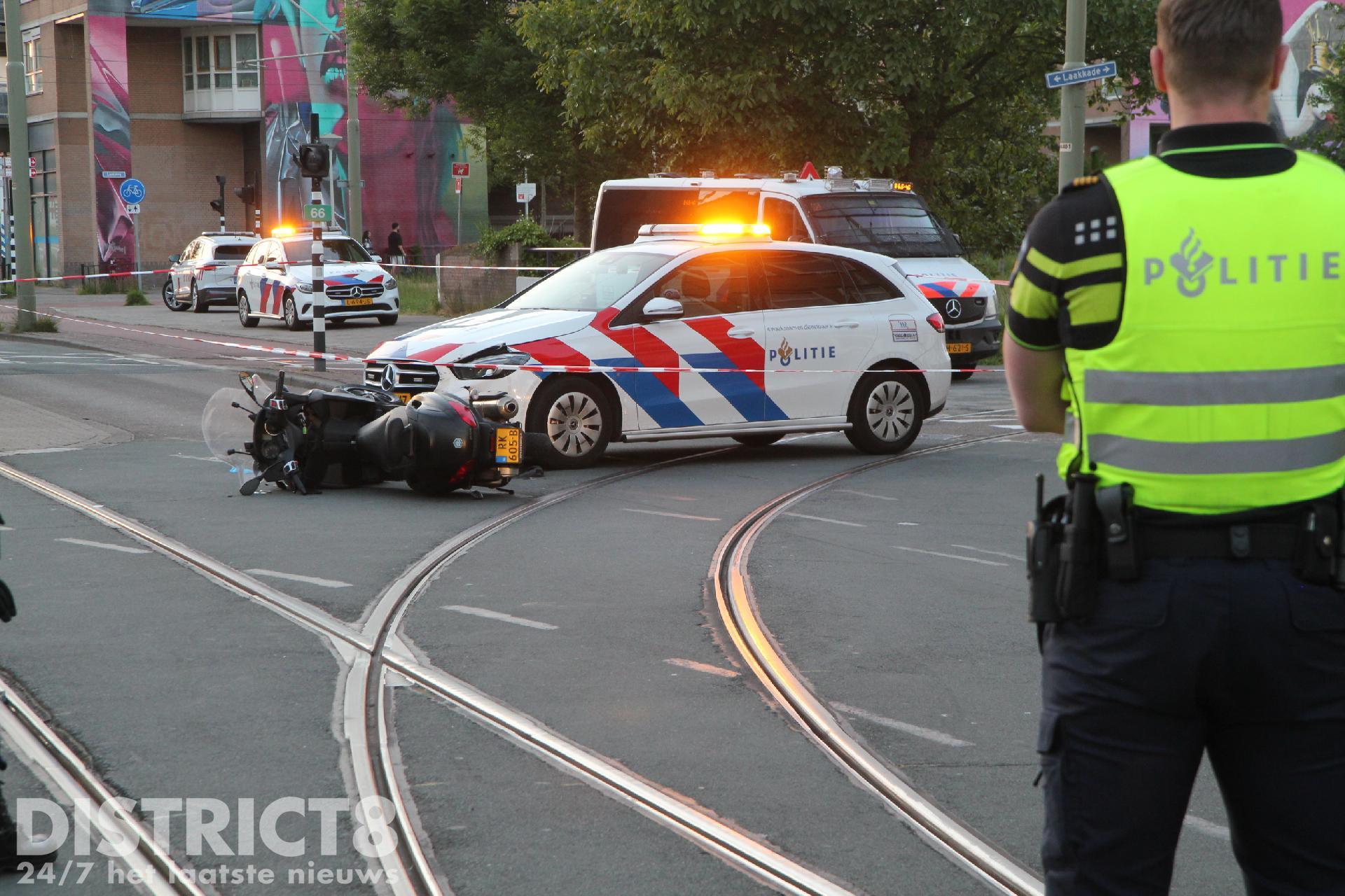 Het ging omstreeks negen uur mis op de Oudemansstraat nadat een motorscooter door nog onbekende oorzaak in botsing kwam met een politievoertuig.