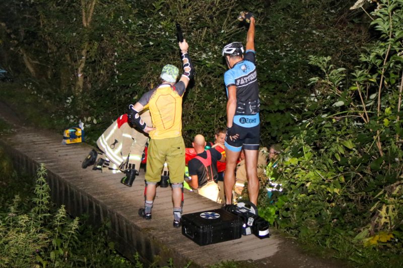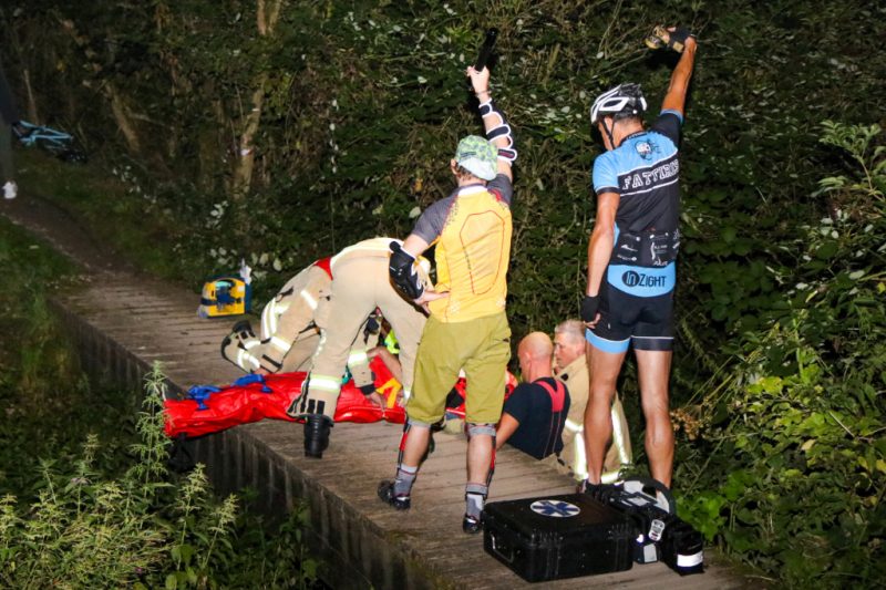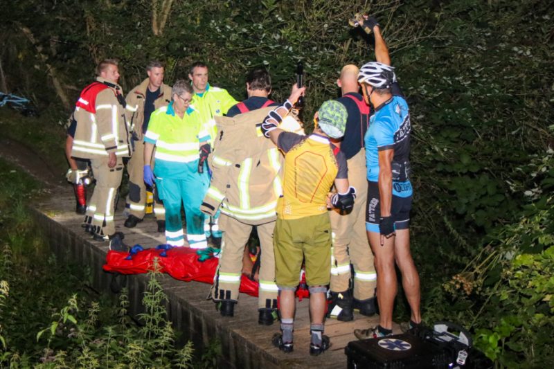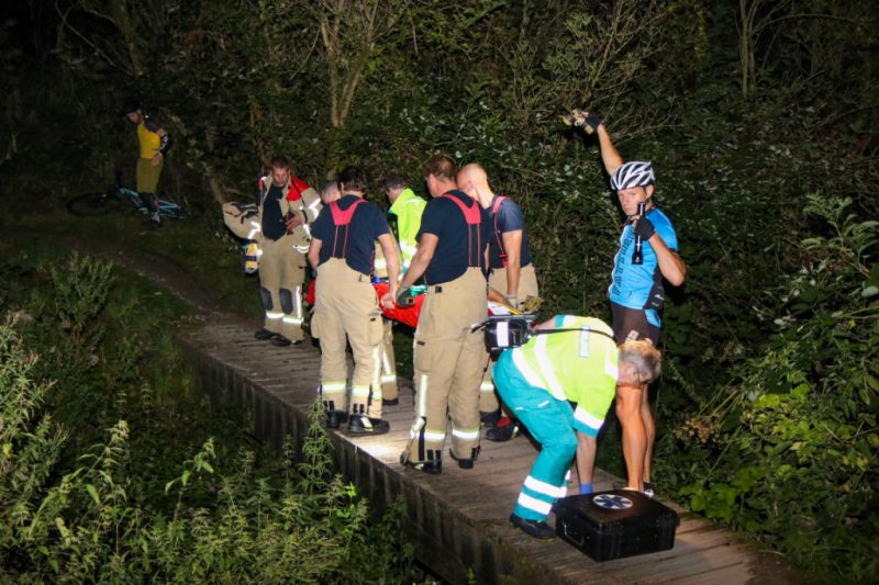 Het was even zoeken waar het slachtoffer was door het ambulance personeel. Omdat het slecht bereikbaar is werd de brandweer met spoed ter plaatse verzocht om te helpen met het tillen van de brancard. Nog een flinke klus over het hobbelige pad en in het donker.